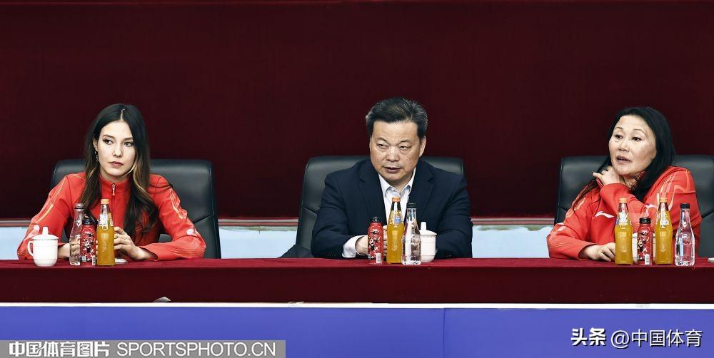 (左起)奧運冠軍谷愛凌、國家體育總局冬運中心黨委書記、主任王磊,谷愛凌母親谷燕現場觀賽