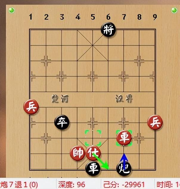 加賽超快棋第三局,總第五盤,程宇東執黑棋在電光石火的激烈對殺中,黑方抓住機會,盤間一個絲線牽牛,用一炮吊住了紅方的車馬。