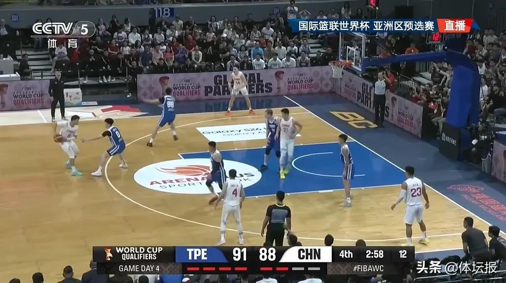 隨後,趙繼偉超遠三分命中,兩隊打成91平,這球成爲了比賽的轉折點,可惜被陳盈駿造成犯規,犯滿離場。關鍵時刻,趙睿造成林庭謙三分犯規,並且三罰兩中。終場前1分42秒,中國男籃95:93領先。