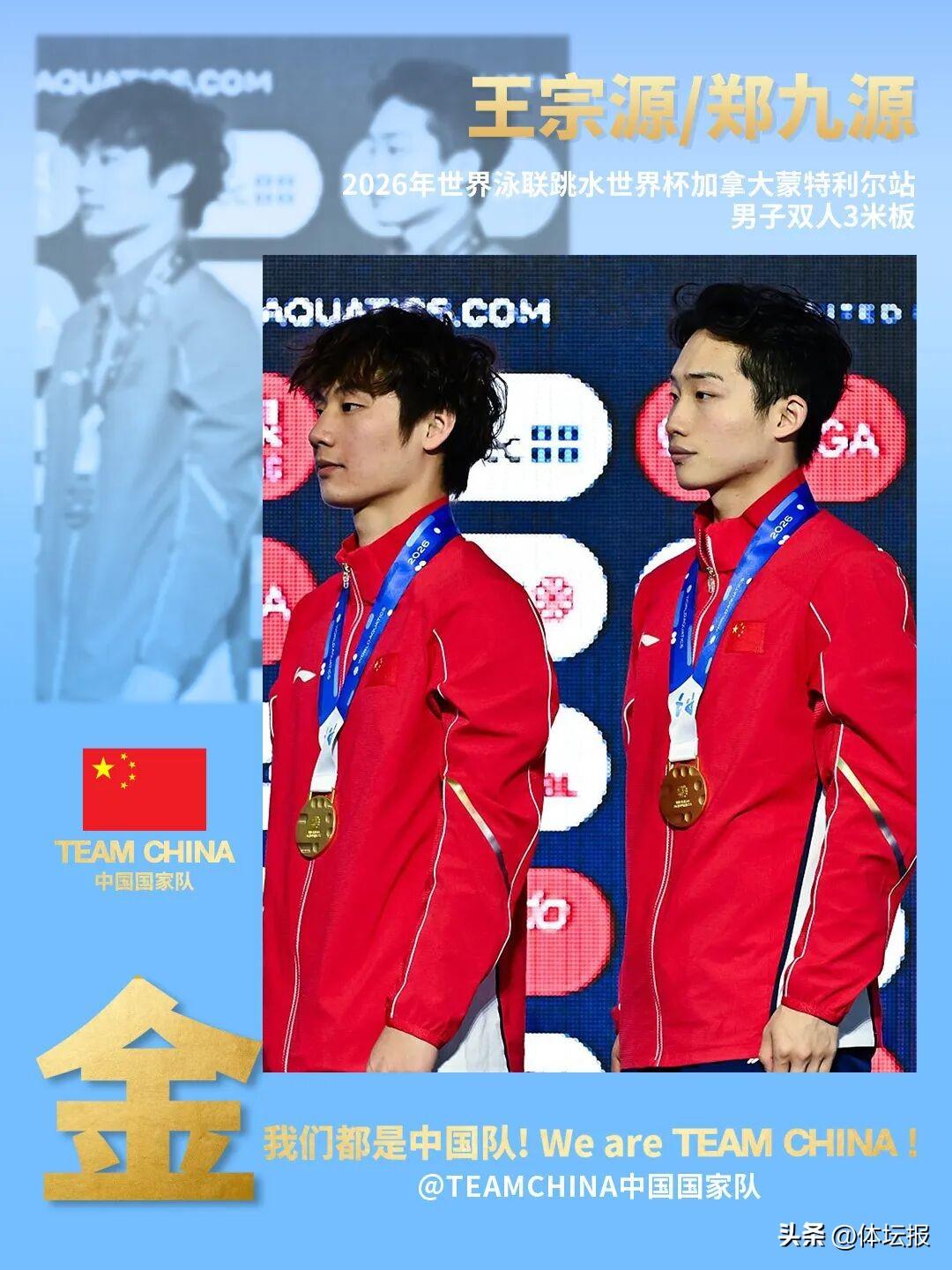 北京時間3月2日,世界泳聯跳水世界盃加拿大蒙特利爾站最後一項比賽男子3米板結束,中國運動員王宗源和鄭九源包攬該項目冠亞軍。至此,中國跳水隊在本站比賽包攬全部金牌,以9金4銀的戰績收官跳水世界盃蒙特利爾站,金牌榜、獎牌榜均列首位。