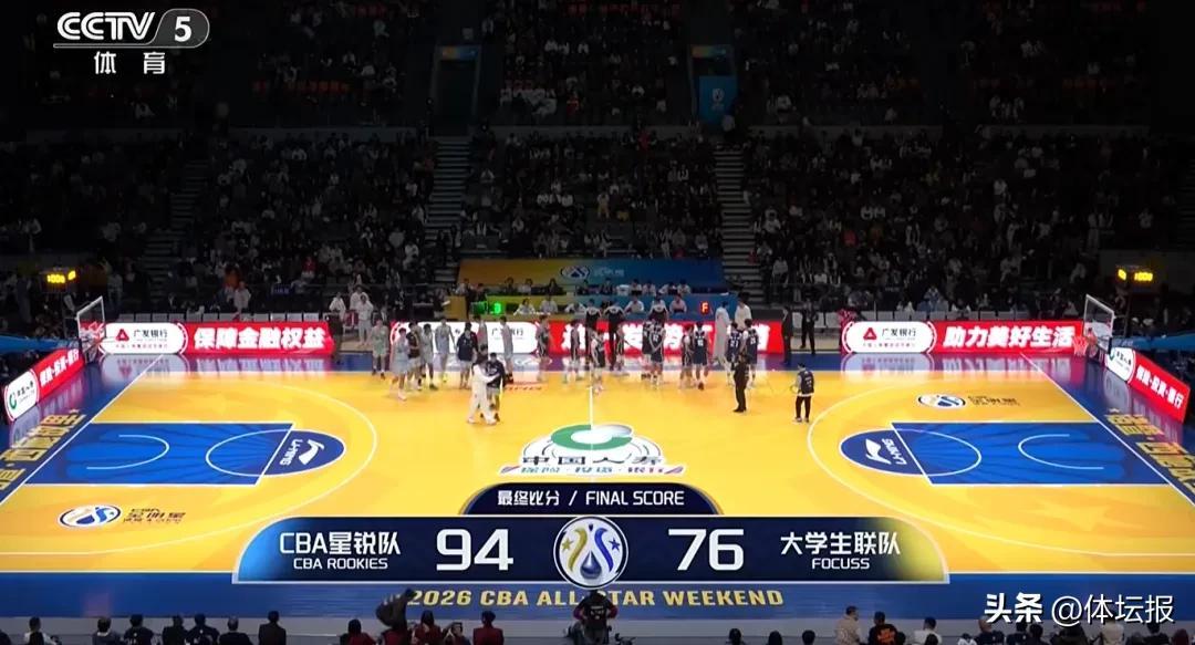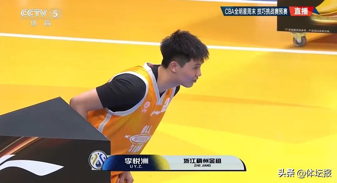 當晚的重頭戲是CBA星銳隊對陣大學生聯隊的星銳挑戰賽,浙江稠州金租小將李悅洲代表CBA星銳隊披掛上陣,他還出戰了技巧挑戰賽。