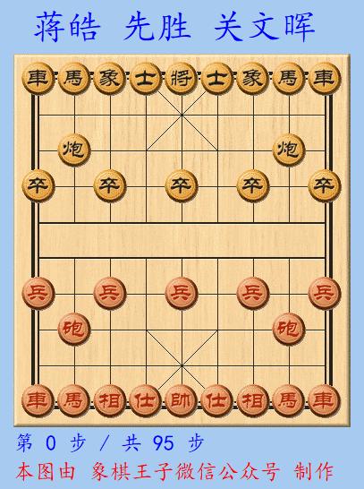 紅用最兇悍的攻法,先棄兩子,再得三子,反多黑方一子,蔣皓打入炮雙兵對雙卒單缺士,95手多子致勝。