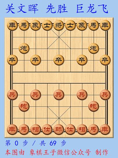 雙方在仙人指路對挺卒,紅兵底炮、黑左中炮陣中,關文暉憑藉經典的臥槽馬,加肋道車炮之力,三子組合,形成致命攻擊,巨龍飛久戰失力,局勢難守,黑錯過平車抓馬的棋之後,69手告負。