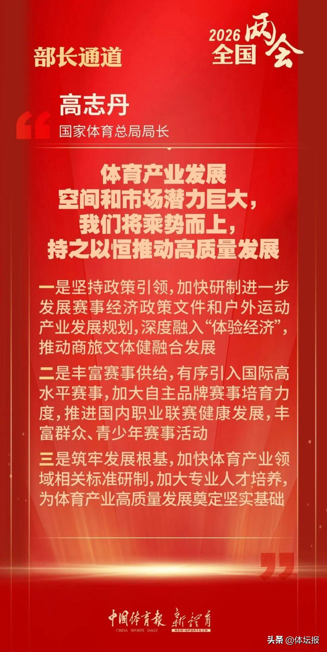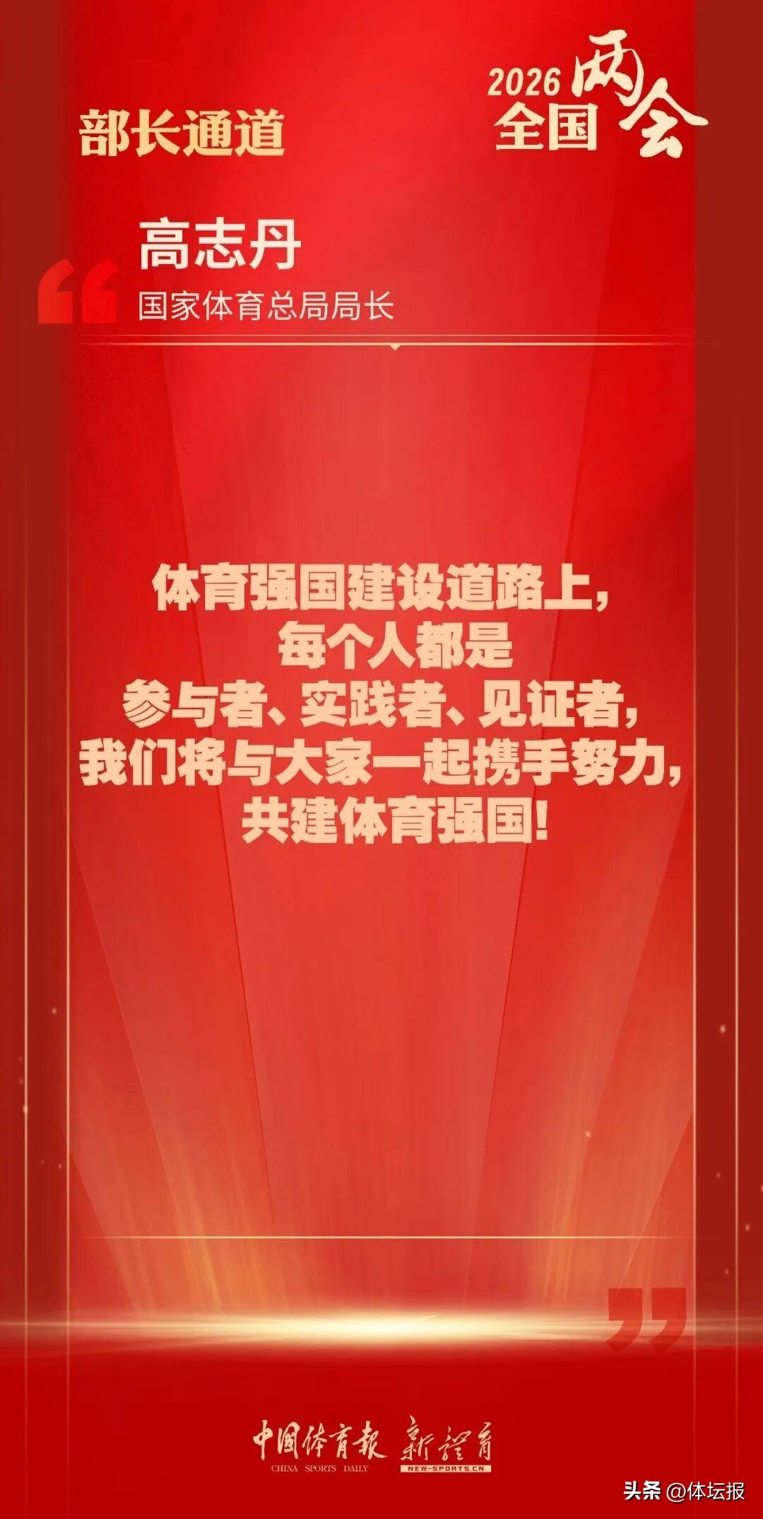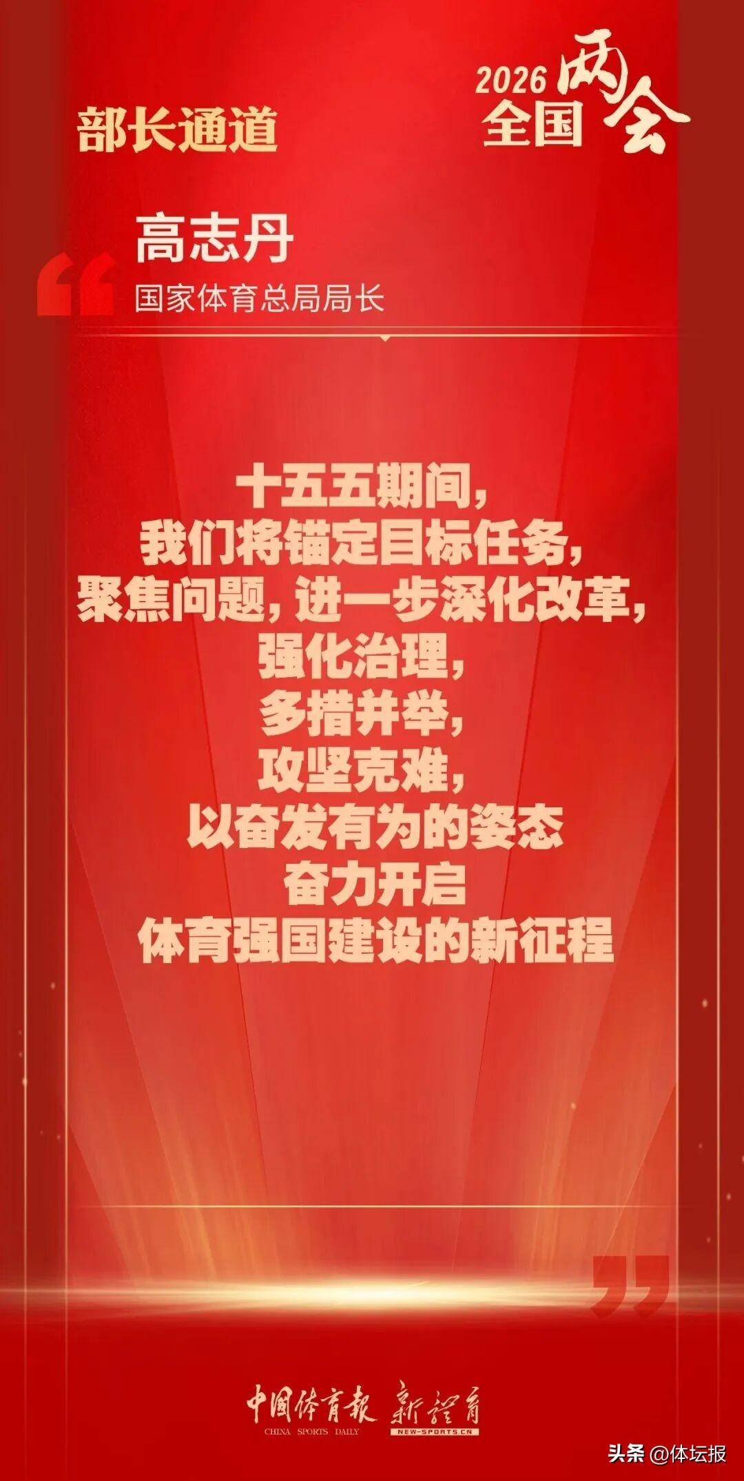 3月9日,在十四屆全國人大四次會議“部長通道”上,國家體育總局局長高志丹就“十五五”體育發展新舉措、體育產業高質量發展等社會關心的問題回答記者提問,系統闡述未來體育工作的發展方向與實踐路徑,爲加快推進體育強國建設凝聚共識、擘畫藍圖。