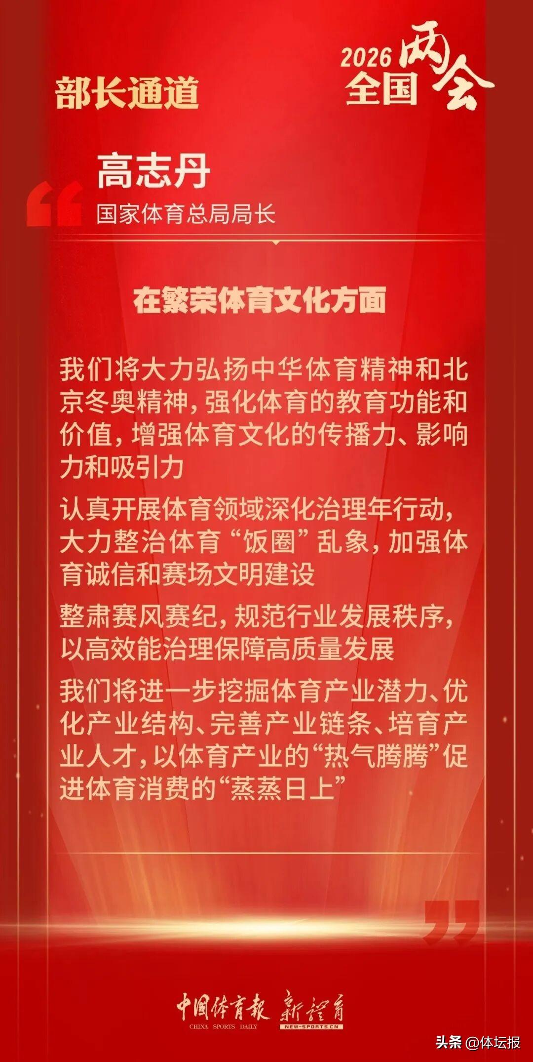 高志丹介紹,將認真開展體育領域“深化治理年”行動,大力整治體育“飯圈”亂象,加強體育誠信和賽場文明建設,整肅賽風賽紀,規範行業發展秩序,以高效能治理保障高質量發展。