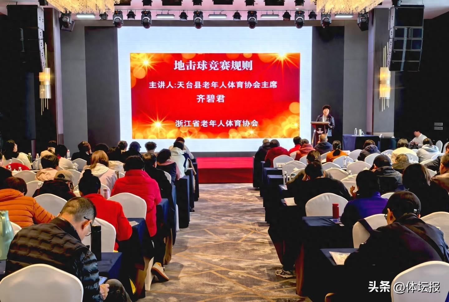 本次培訓班特邀天台縣老年體協主席齊碧君主講,天台也是地擊球項目的發起地。她系統闡述了地擊球的項目精髓:這是一項集技能與智力、競技與趣味爲一體的球類活動,動作強度適中、安全係數高,且規則易學、場地靈活,非常適合老年朋友參與。齊碧君介紹,地擊球既是強身健體的優良運動,能有效活動關節、協調身心,又是富含文化內涵的休閒方式,契合“老有所樂、老有所爲”的老年生活追求。她的講課生動風趣,結合豐富案例拆解規則與執裁要點,沉浸式教學極大激發了學員積極性,現場學習氛圍濃厚。