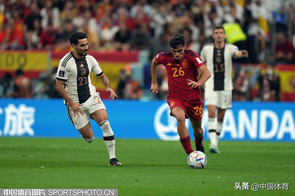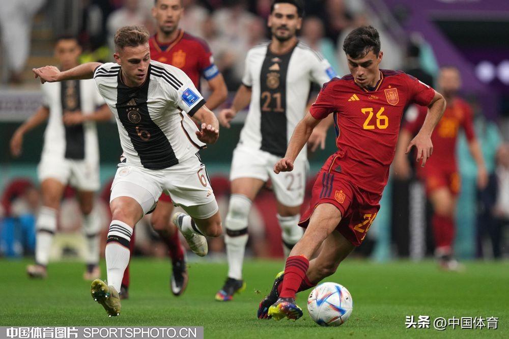 中國體育訊 卡塔爾當地時間11月27日,2022年卡塔爾世界盃足球賽小組賽次輪的比賽繼續進行。在E組比賽中,西班牙隊與德國隊1比1握手言和。(中國體育圖片 李翔 攝)