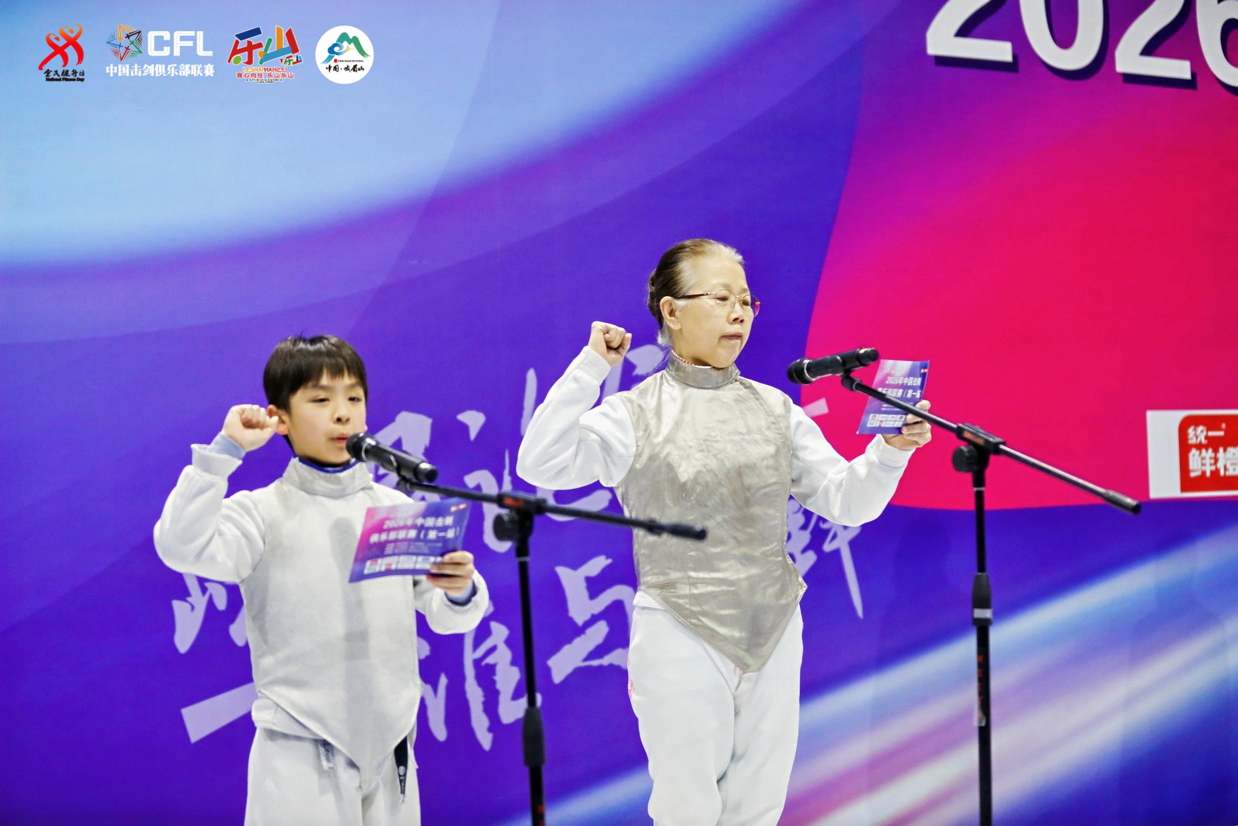 開幕式上,張利娜與本次賽事年齡最小的參賽選手並肩而立,共同莊嚴宣誓。一老一少,恰好詮釋了擊劍運動生生不息、代代相傳的深意。