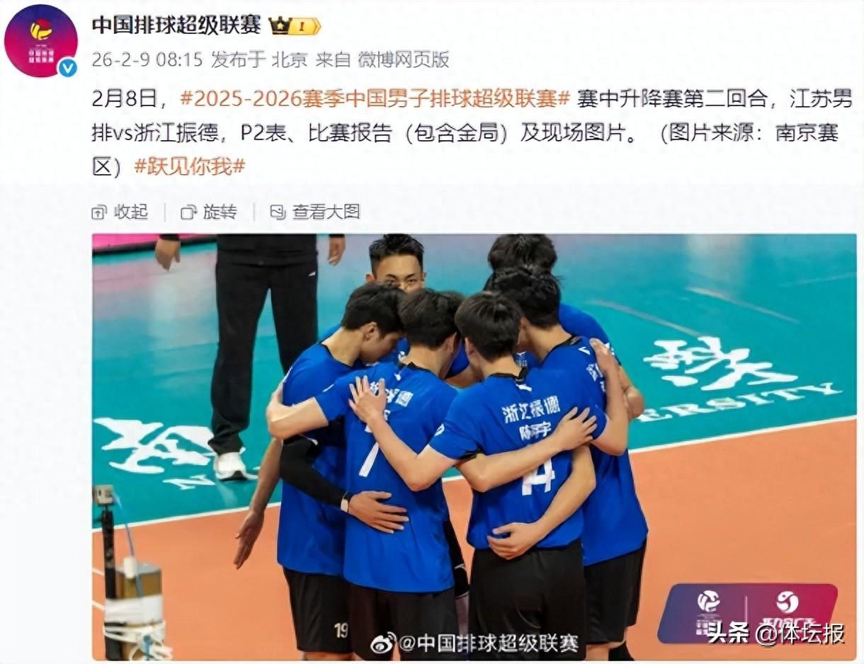 3月13日,浙江振德男排在2025-2026全國男子排球超級聯賽B組決賽次回合中,以3比0戰勝雲南滇池男排,以兩回合全勝的戰績奪得B組冠軍。