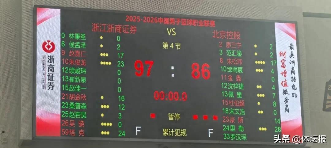 此役,浙商證券男籃五人得分上雙,塔克得到全隊最高的24分,朱儁龍拿下23分,這也是他本賽季的單場最高分;北京控股男籃三人得分上雙,裏勒空砍全場最高的28分。