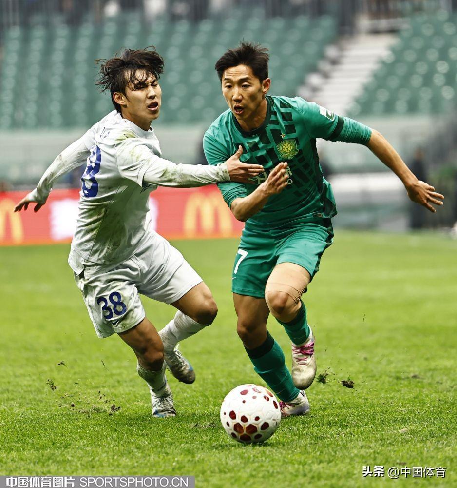 北京國安隊曹永競帶球突破受阻