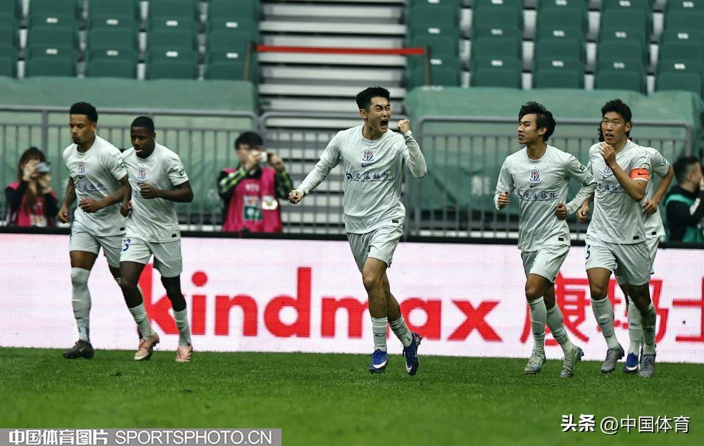 上海申花隊陳晉一(中)慶祝進球