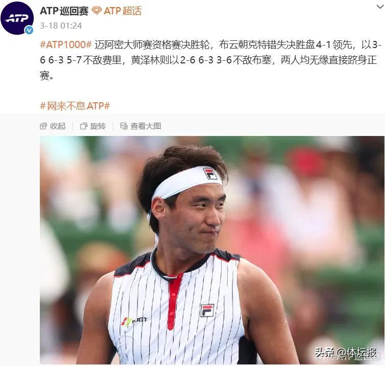因此,布雲朝克特在本賽季精簡了賽程,上週的邁阿密站是他繼戴維斯盃結束後的首場比賽。但除了臨場狀態的波動,他技術和心態上的短板也通過比賽顯現。邁阿密站資格賽決勝輪的決勝盤,布雲朝克特手握4比1的領先優勢,距離正賽資格僅一步之遙。但隨着費裏放開手腳展開反撲,布雲朝克特狀態出現波動。由於戰術偏於保守,他的發球威力下降,底線失誤增多,被對手連破帶保連續追分。在關鍵的第12局,布雲朝克特未能頂住壓力,發球局再次失守,最終以5比7遺憾告負。