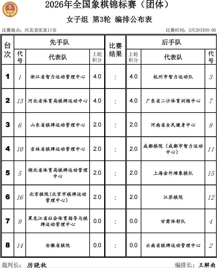 本次2026年全國象棋團體錦標賽,由國家體育總局棋牌運動管理中心、中國象棋協會主辦,河北省體育局棋牌運動中心、河北省象棋協會、張家口市體育局承辦,張家口興垣體文旅運營管理有限公司協辦。