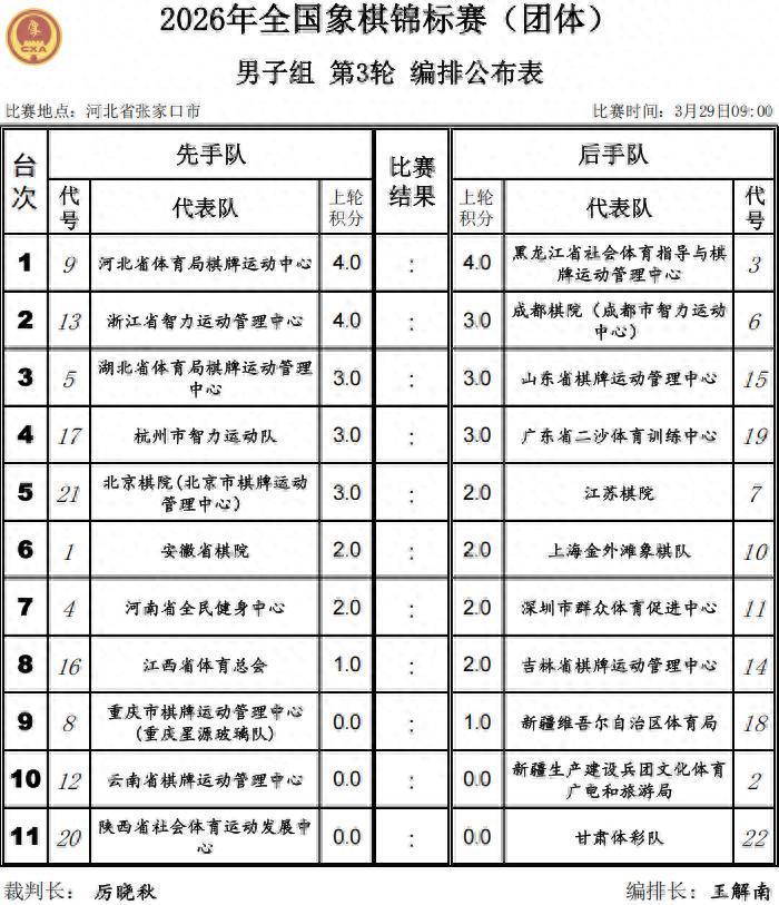 大賽29日上午九點,進行本次團體賽男女子第3輪的大戰,誰能一舉搶分,強力向前,奪取匹馬領先之勢,突出重圍,劍指王冠而去,象棋王子也將繼續進行全程的直播和報道(抖音:象棋王子),敬請關注、支持、守護,謝謝!
