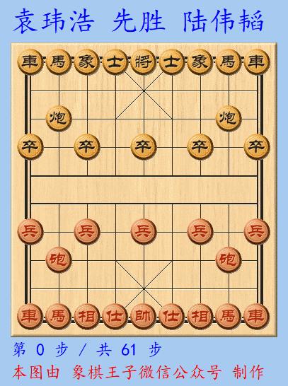 男子河北隊首輪與上海隊的大斗,冀軍實力派特大陸偉韜後手不慎遭遇上海隊14歲天才新星袁瑋浩的仙人指路對卒底炮,紅方右中炮、黑飛左象,紅高左邊車飛刀,復回窩心馬的冷陣。