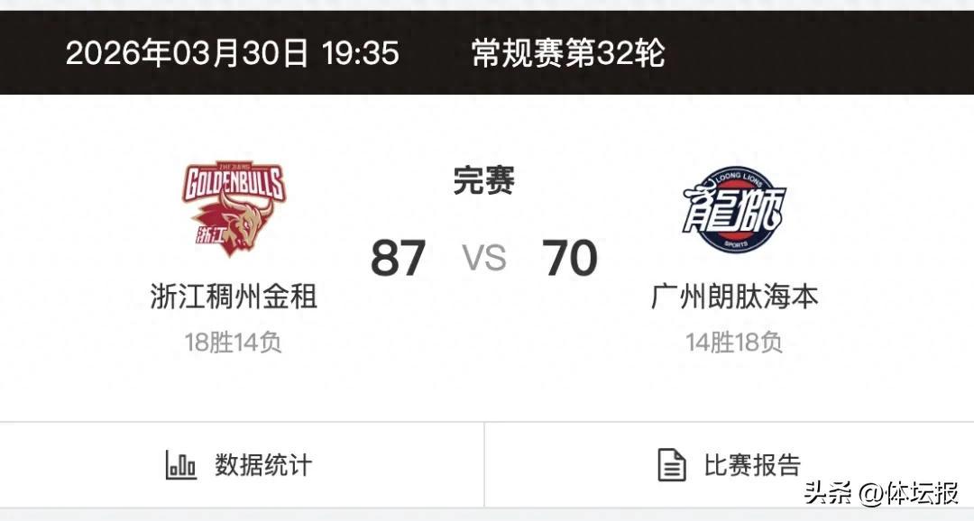 3月30日晚,浙江稠州金租在主場迎戰廣州朗肽海本,開啓四連主的首個主場。目前,浙江稠州金租排名聯賽第9,仍在季後賽徘徊。不過,浙江稠州金租本賽季高達80%的主場勝率被大家稱爲“魔鬼主場”。因此,能否利用好這一波主場優勢,也成爲球隊能否晉級的關鍵一環。最終,依靠程帥澎和李悅洲的出色發揮,浙江稠州金租男籃以87-70戰勝廣州男籃,同樣也是賽季第三次戰勝廣州男籃。