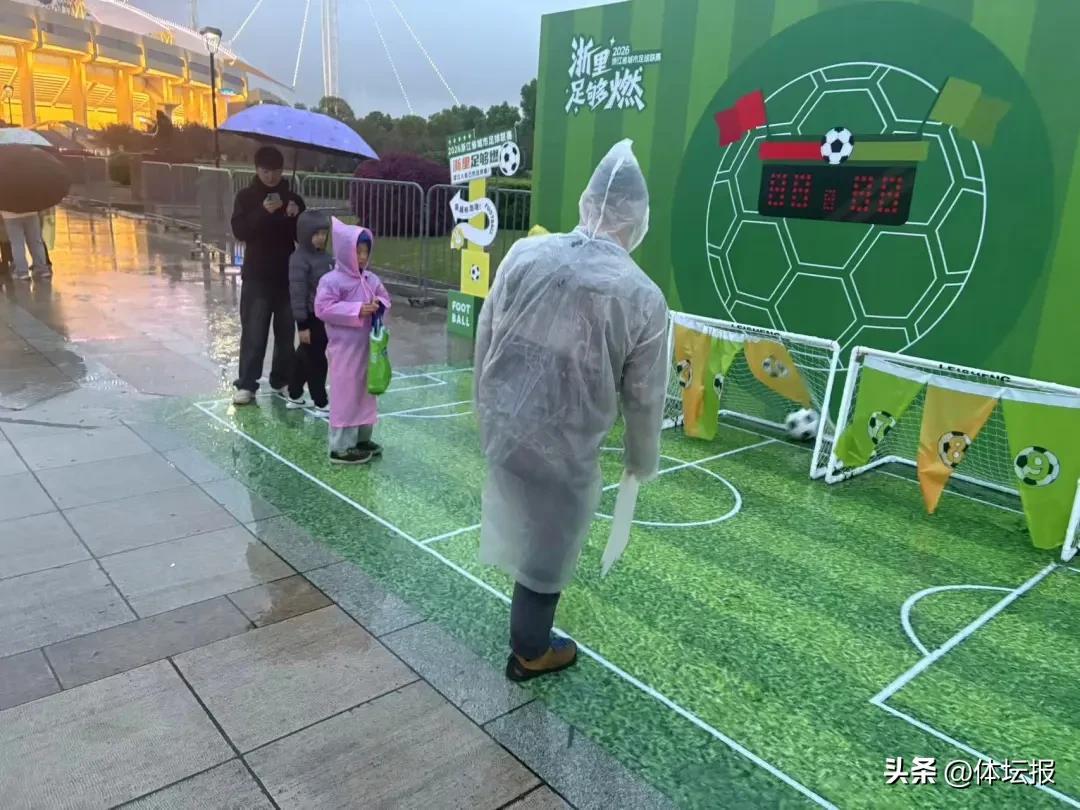 排在後面的陳女士帶着6歲的女兒張佳佳耐心等待,她告訴記者:“我們家女兒其實更喜歡畫畫,但今天看到這個射門裝置,主動說要試試。儘管天空不作美,但足球的氛圍是會傳染的,我覺得這就這類活動的意義——讓更多孩子願意走近足球。”