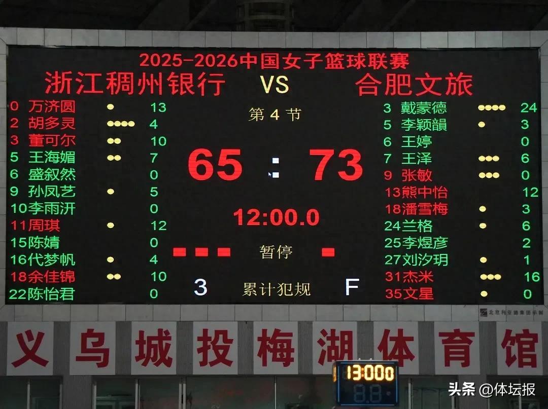 3月31日,2025-2026賽季WCBA聯賽季後賽排位賽第二場,浙江稠州銀行女籃坐鎮主場對陣合肥文旅女籃,最終65-73不敵對手,大比分0-2落後。