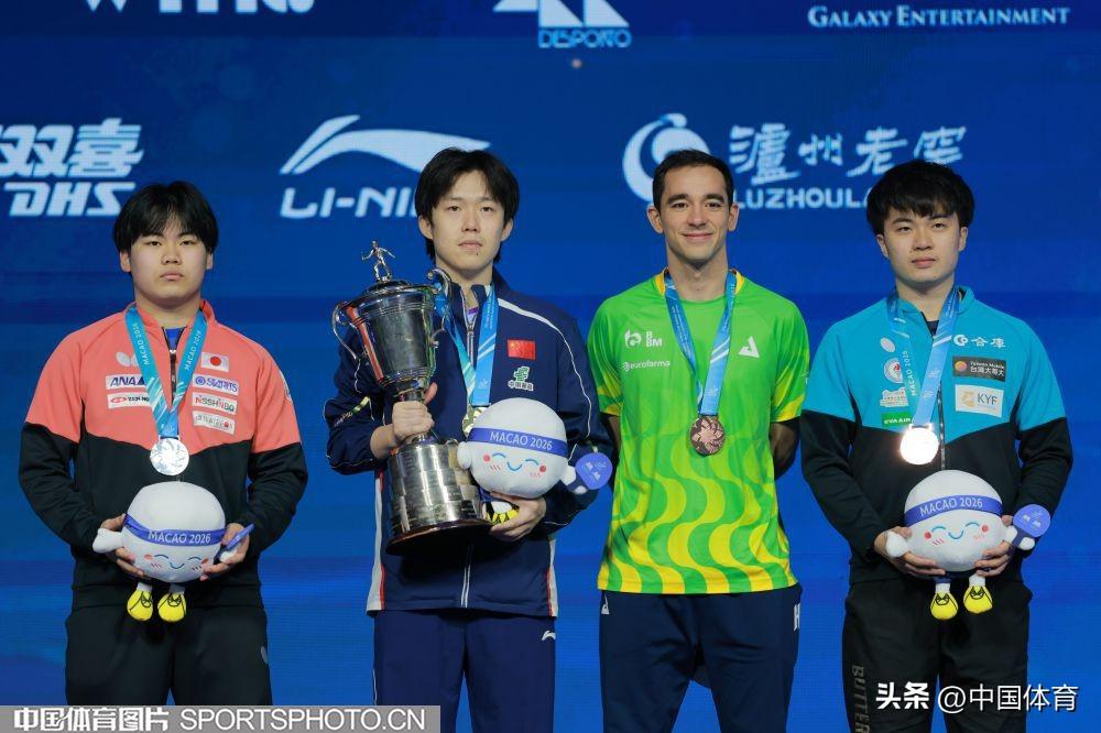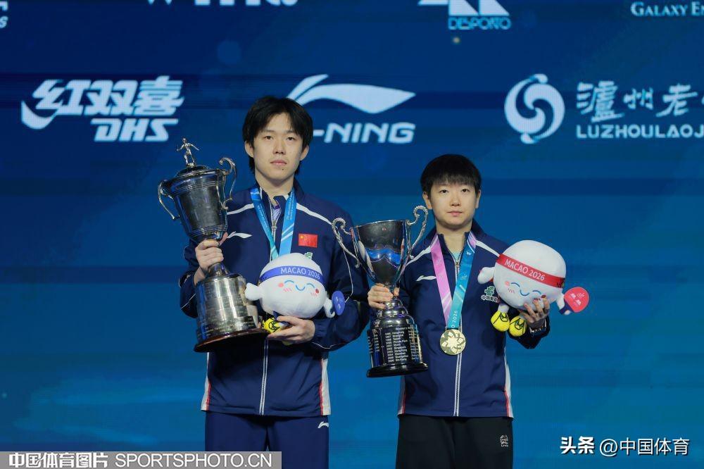中國體育訊 北京時間4月5日,2026年澳門國際乒聯男子和女子世界盃在澳門銀河綜藝館落下帷幕。在女子決賽中,中國選手孫穎莎4比1戰勝隊友王曼昱,奪得冠軍,王曼昱獲得亞軍,莎賓·溫特和申裕斌獲得季軍。 在男子決賽中,中國選手王楚欽4比3擊敗日本選手鬆島輝空,奪得冠軍,松島輝空獲得亞軍,雨果·卡爾德拉諾和林昀儒獲得季軍。(中國體育圖片 鹿麟 攝)