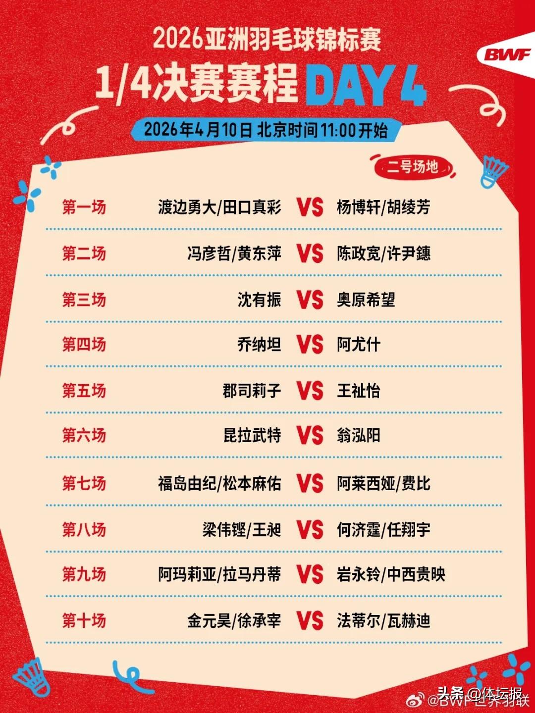 賽後,“梁王”對比賽進行了總結,並表示大賽中第一場比賽往往比較困難。這場比賽的球速跟訓練時候的感覺不太一樣,稍微偏快一點,二人在適應這種改變。“第二局一開始落後,後面做得好的是減少了失誤,各個環節的整體失誤率都降了下來。”王昶說,當天的逆轉展現了二人糾錯能力的提升,關鍵時刻也經受住了考驗。雖然之後馬上又將迎來湯尤杯的比賽,但二人的心態非常穩定,將做好體能分配,專注當下比賽。“梁王”1/4決賽日程如下: