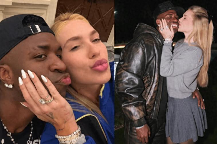 短短一句話,卻讓無數網友感受到了這對金童玉女之間的濃情蜜意。照片中,兩人或依偎在海邊看日落,或在派對中相視而笑,每一幀都洋溢着幸福的氣息。維尼修斯毫不掩飾對女友的愛意,評論區瞬間被球迷和好友的祝福刷屏。