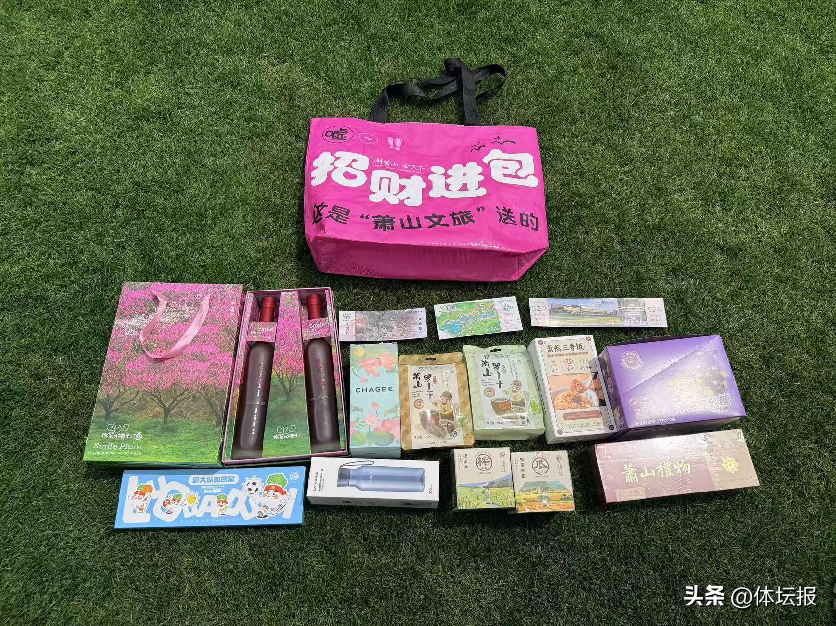 杭州市蕭山區文化旅遊體育發展服務中心六級職員沈雁飛介紹,觀賽包有15件以上的物品,由基礎物資和蕭山特色加碼物資兩部分組成。基礎物資包括助威服、助威棒、手搖旗、環保垃圾袋、衛生溼巾、軟包裝飲用水及備用雨衣等。加碼物資有本土特色物品——蕭山蘿蔔乾、蕭山禮物抵價券,以及不二家餅乾、霸王茶姬優惠券包、杭州市文商旅促消費宣傳單頁、“吳越杯”球迷專享出行券包(飛豬)、滴滴打車專享券等。