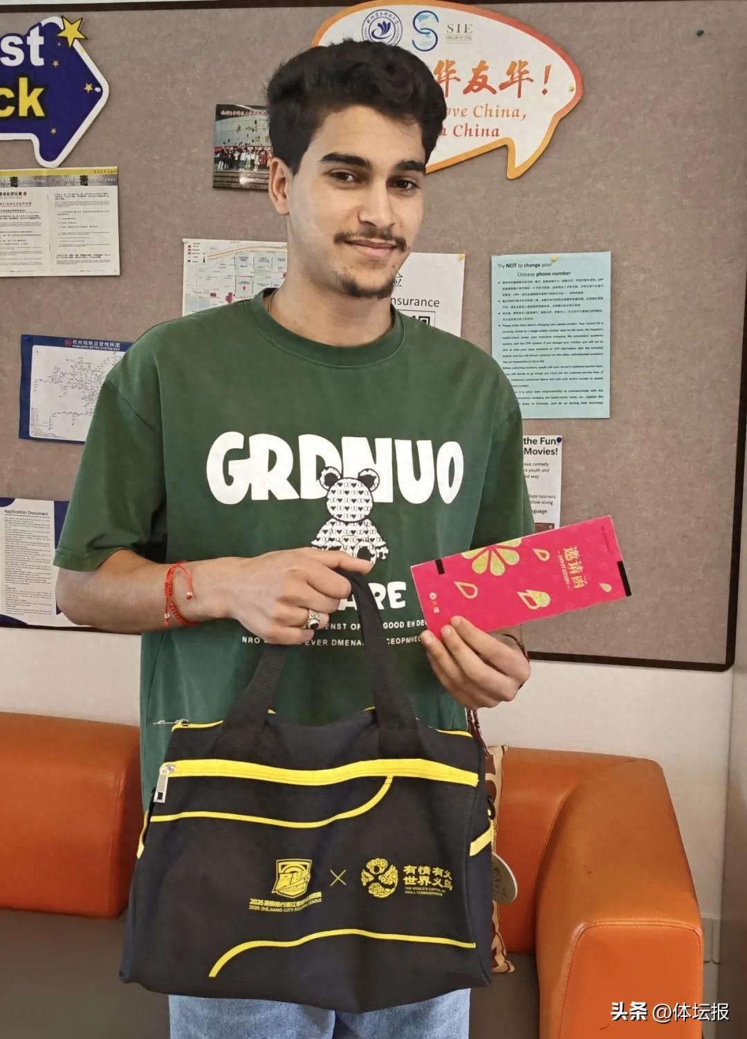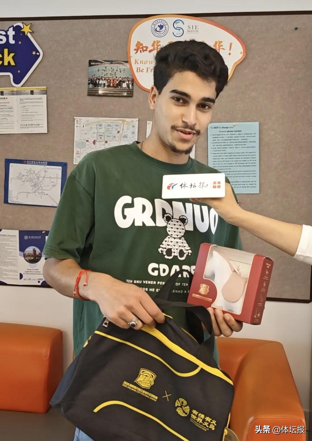 在瞭解到尤博是足球愛好者、希望現場觀看“吳越杯”後,本報記者來到杭州電子科技大學,送上了4月11日杭州VS嘉興的比賽門票及“吳越杯”特許商品。尤博收到後非常開心,併爲“吳越杯”和杭州隊加油。
