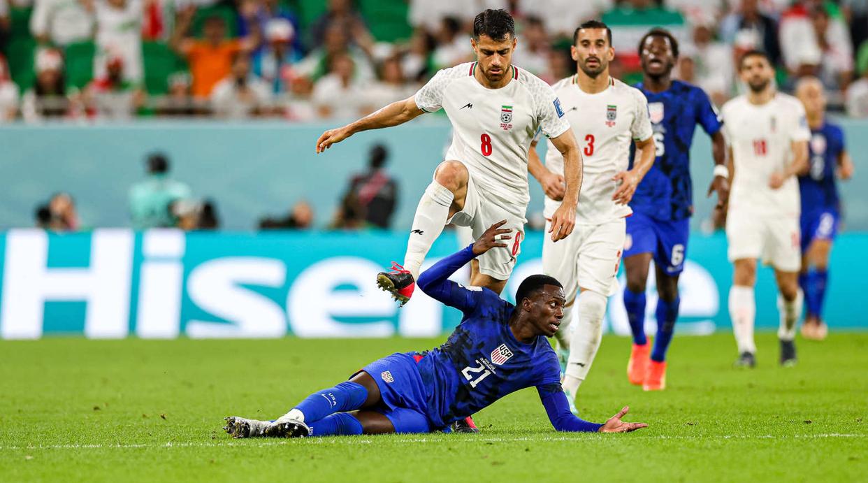 易邊再戰,伊朗放手一搏,先是古多斯頭球爭頂高出球門,隨後他又在禁區外迎球怒射偏出球門。傷停補時階段,伊朗前場任意球傳中,普拉利甘吉頭球稍稍高出橫樑,再加上讀秒階段一次頗具爭議的判罰,伊朗沒能拿到壓哨點球,最終遺憾出局。