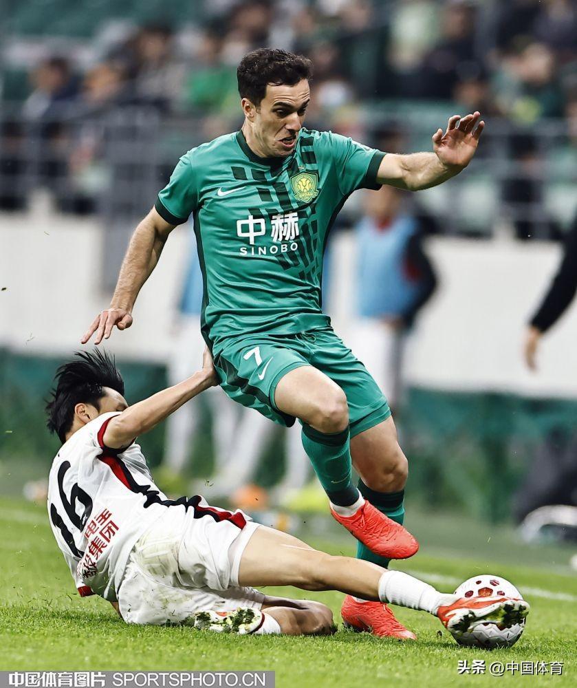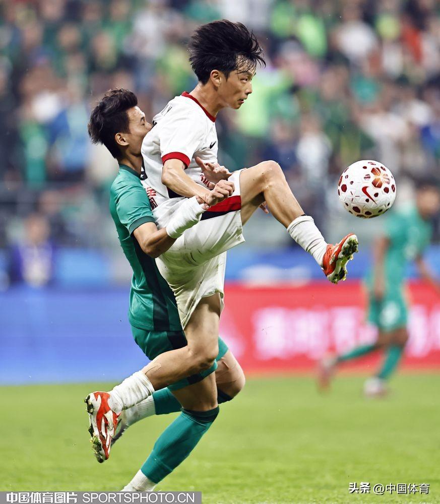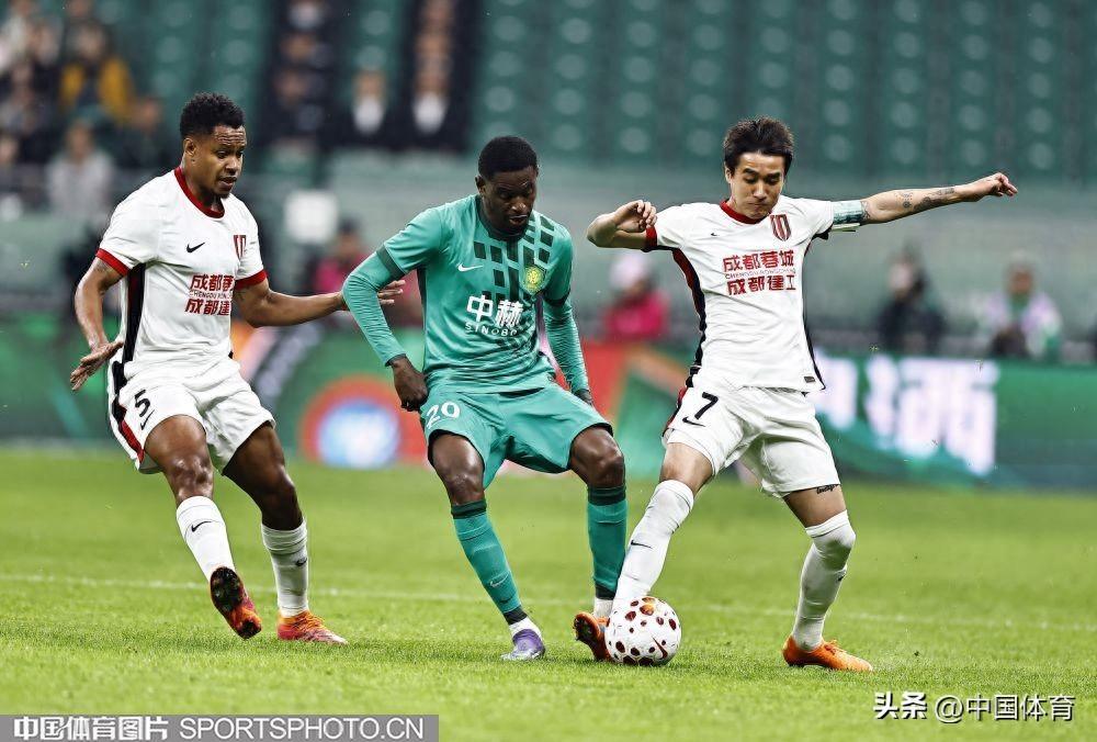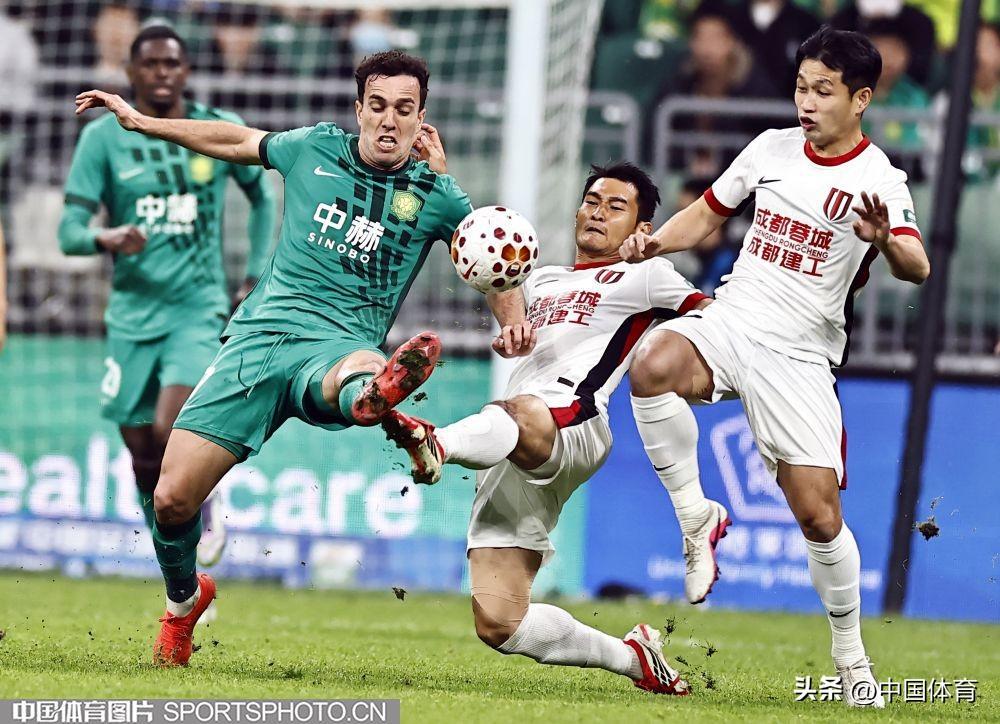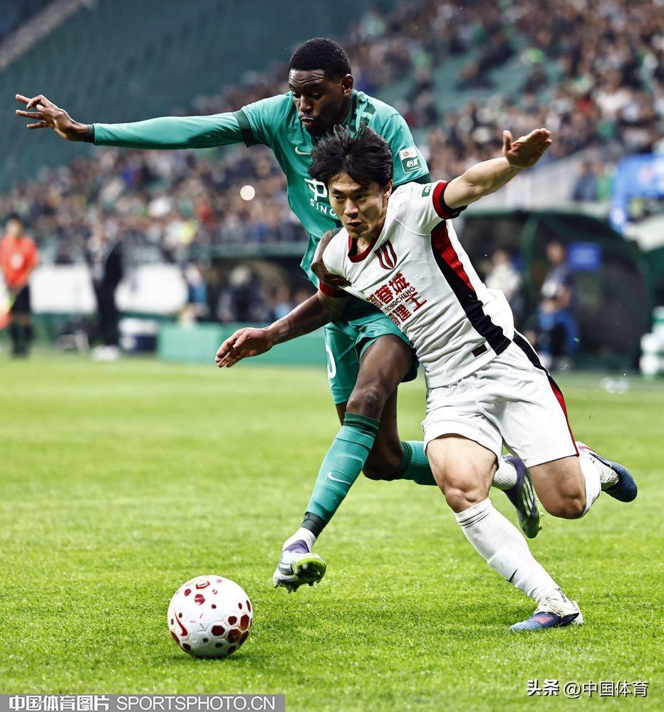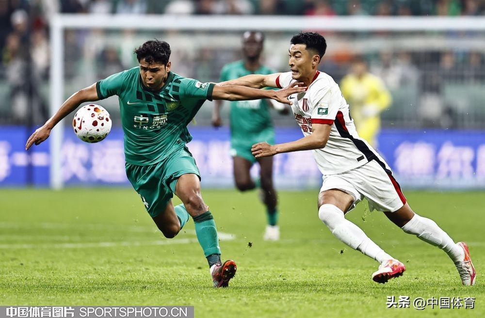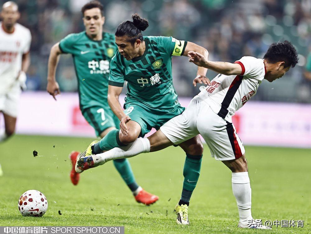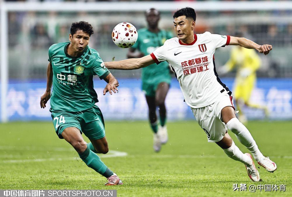 北京國安隊阿不都海米提·阿不都格尼(左)防守成都蓉城隊王子銘