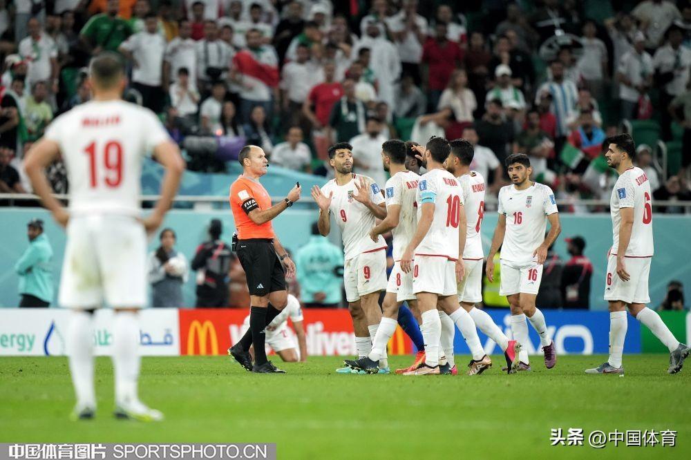 圖爲伊朗隊隊員與裁判交涉