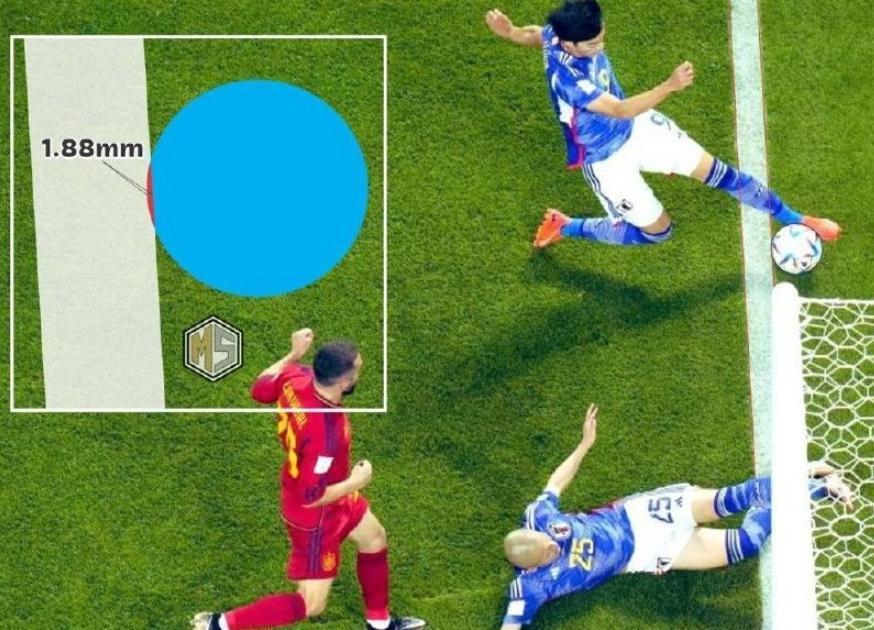 一時間,在德國國內的社交平臺上,瘋狂出現各個角度拍攝日本傳球瞬間的截圖,確實從很多角度來看,皮球像是除了底線,但科技很難說謊,根據球體正上方的垂直投影,纔是最標準的答案,德國足球這次只能“認命”了!