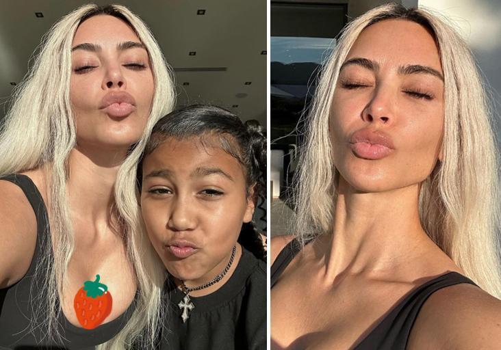 此外,金卡戴珊本週還更新了一組INS自拍,與女兒小西北一同出鏡,金姐披散着一頭白髮,皮膚狀態真的好,女兒小西北也很可愛,只不過她真的太像父親侃爺了。與女兒自拍時,42歲的金卡戴珊還噘嘴凹造型,看起來比小西北還要有“少女感”。