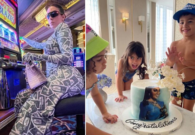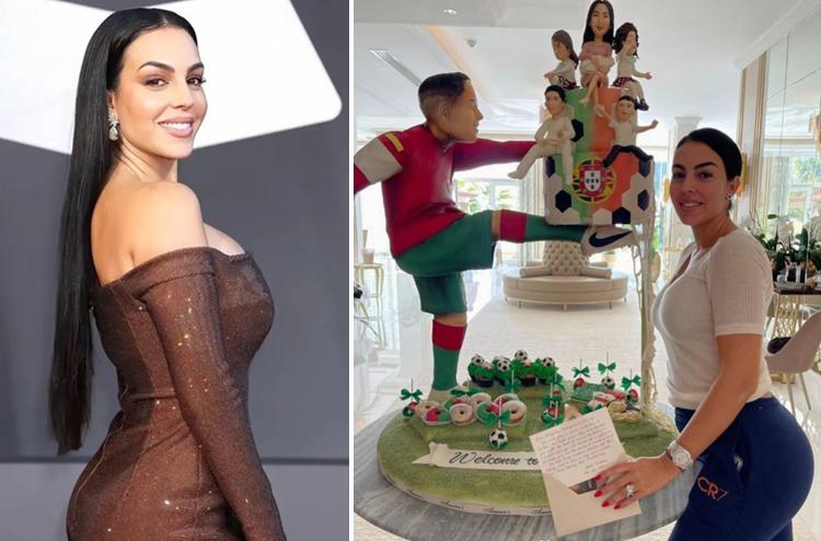 據悉,喬治娜收到了兩個特製蛋糕,一個印有喬治娜的照片,而另一個則是頗爲浮誇,專門設計了一個C羅射門的定格玩偶,並且在蛋糕師捏出了喬治娜與孩子的可愛造型,可以說,非常用心了,喬治娜收到這樣的禮物也是特別開心,第一時間在INS上曬圖分享。
