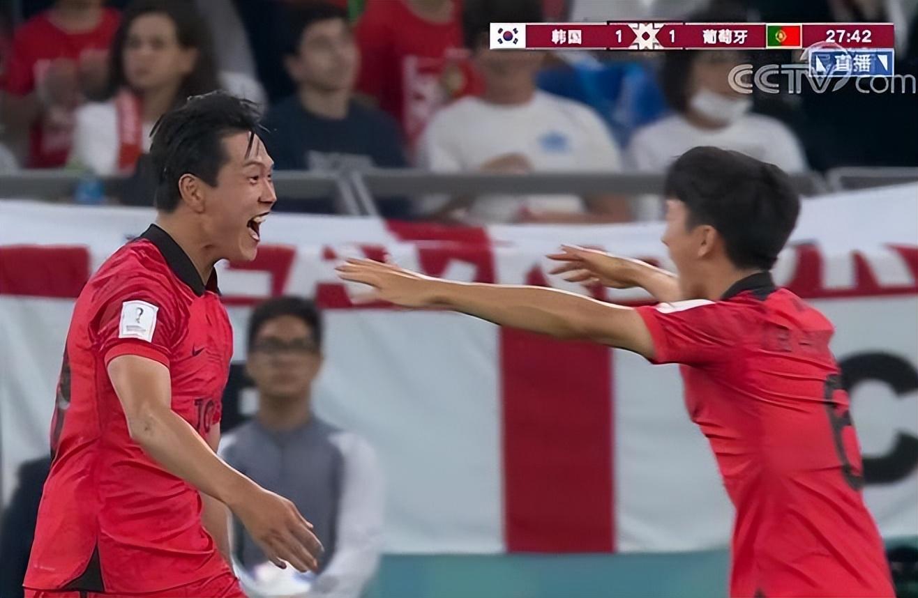 比賽第27分鐘,韓國人扳平了比分,利用一次角球機會,韓國19號球員金英權倒地剷射破門,1-1,值得一提的是,這是曾經在中超廣州恆大效力的後衛金英權在世界盃上的第二粒進球,他的上一次破門是在俄羅斯世界盃上,尾聲階段攻破德國隊的城池,讓對手遺憾出局。