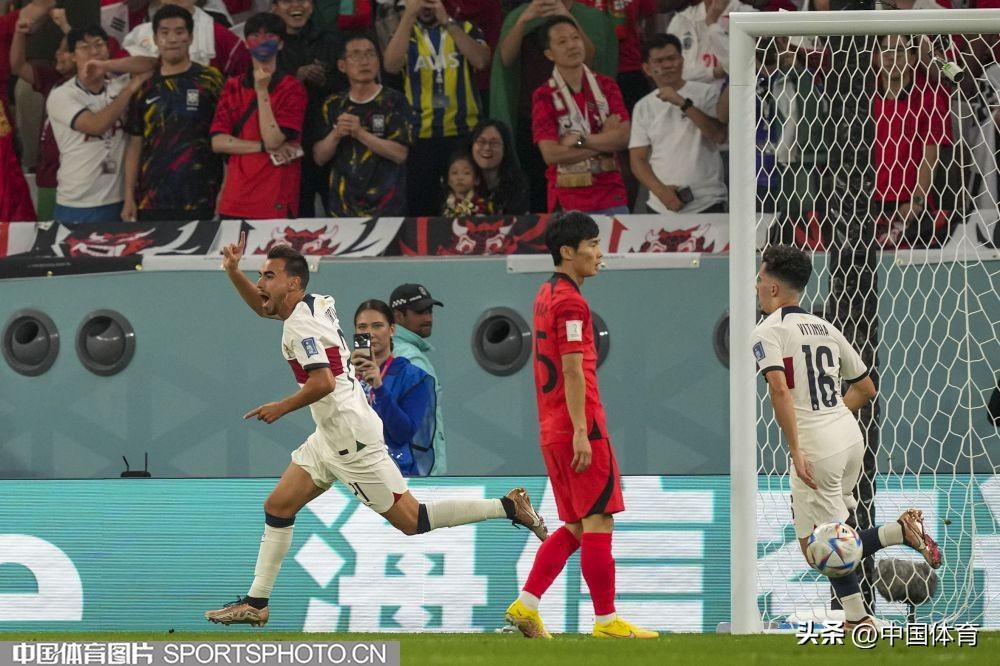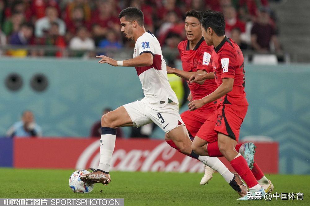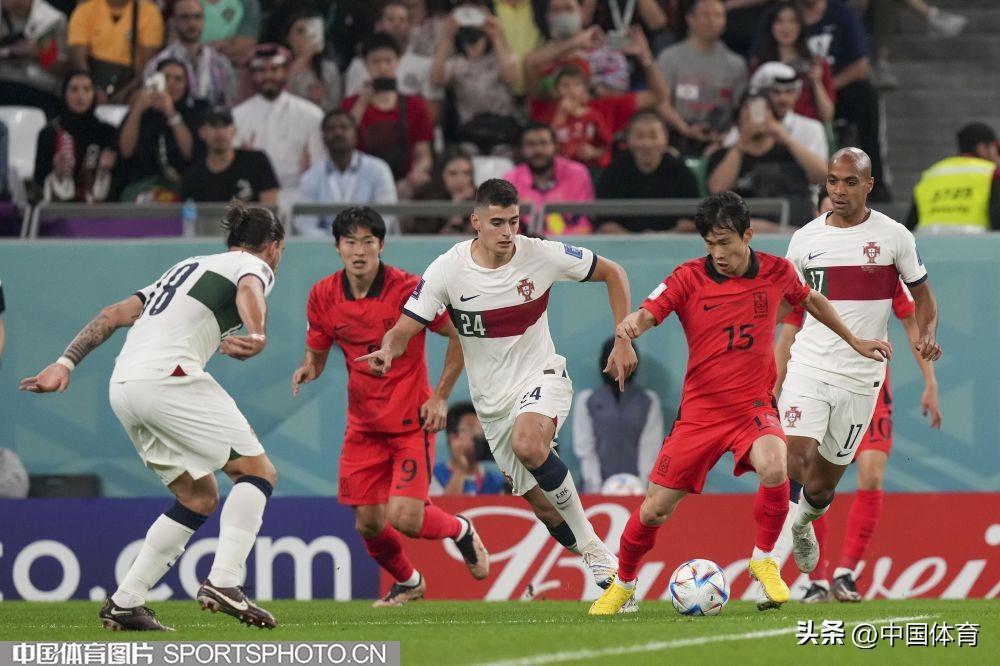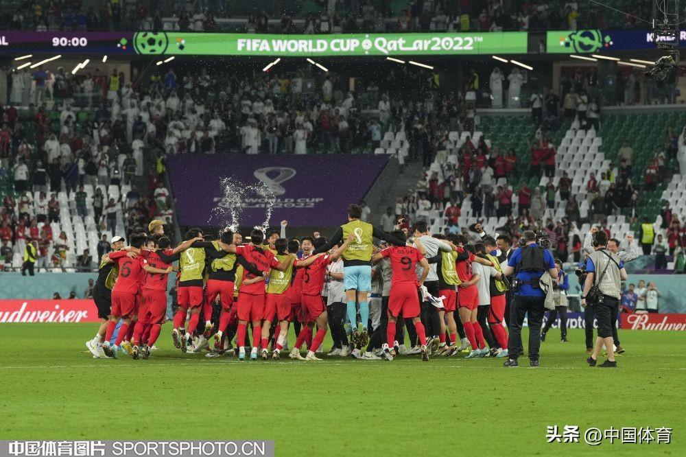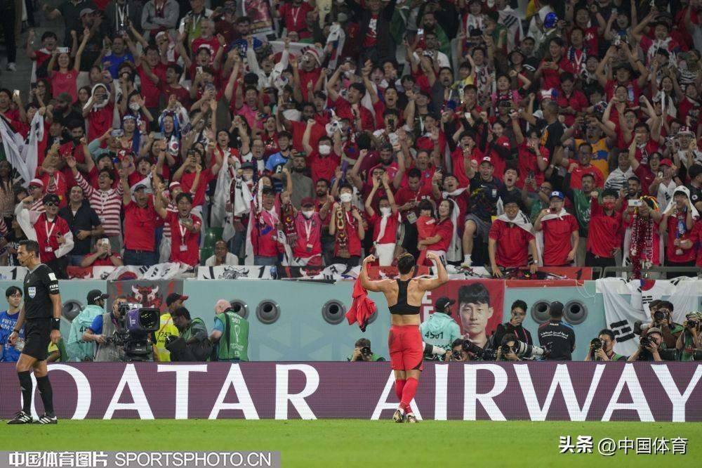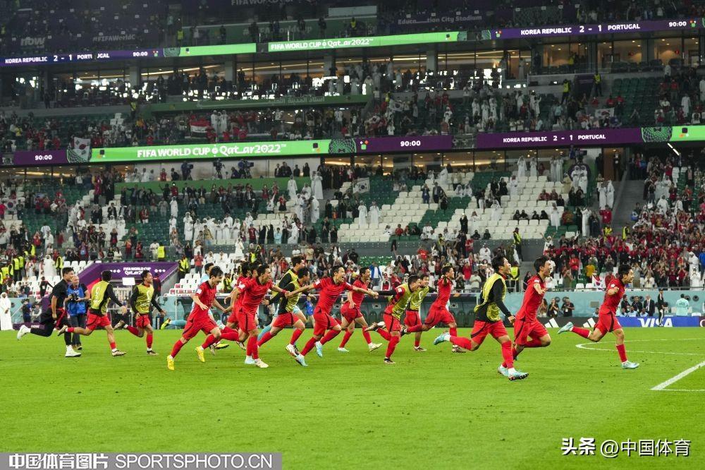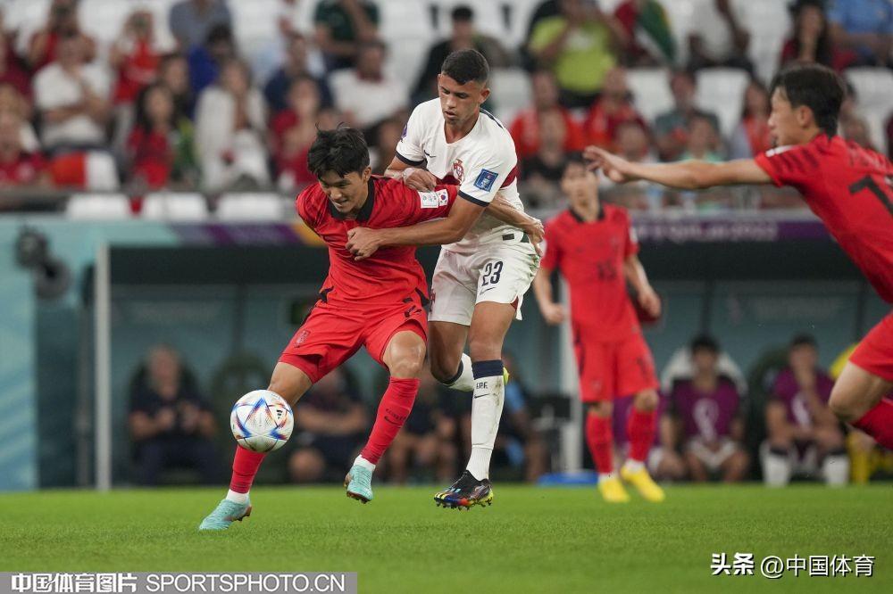 中國體育訊 卡塔爾當地時間12月2日,2022年卡塔爾世界盃足球賽小組賽第三輪的比賽繼續進行。在H組比賽中,韓國隊2比1擊敗葡萄牙隊,一勝一平一負與烏拉圭隊戰績、積分相同,憑藉進球數優勢排名第二,順利晉級。葡萄牙隊排名小組第一齣線。(中國體育圖片 李翔 攝)