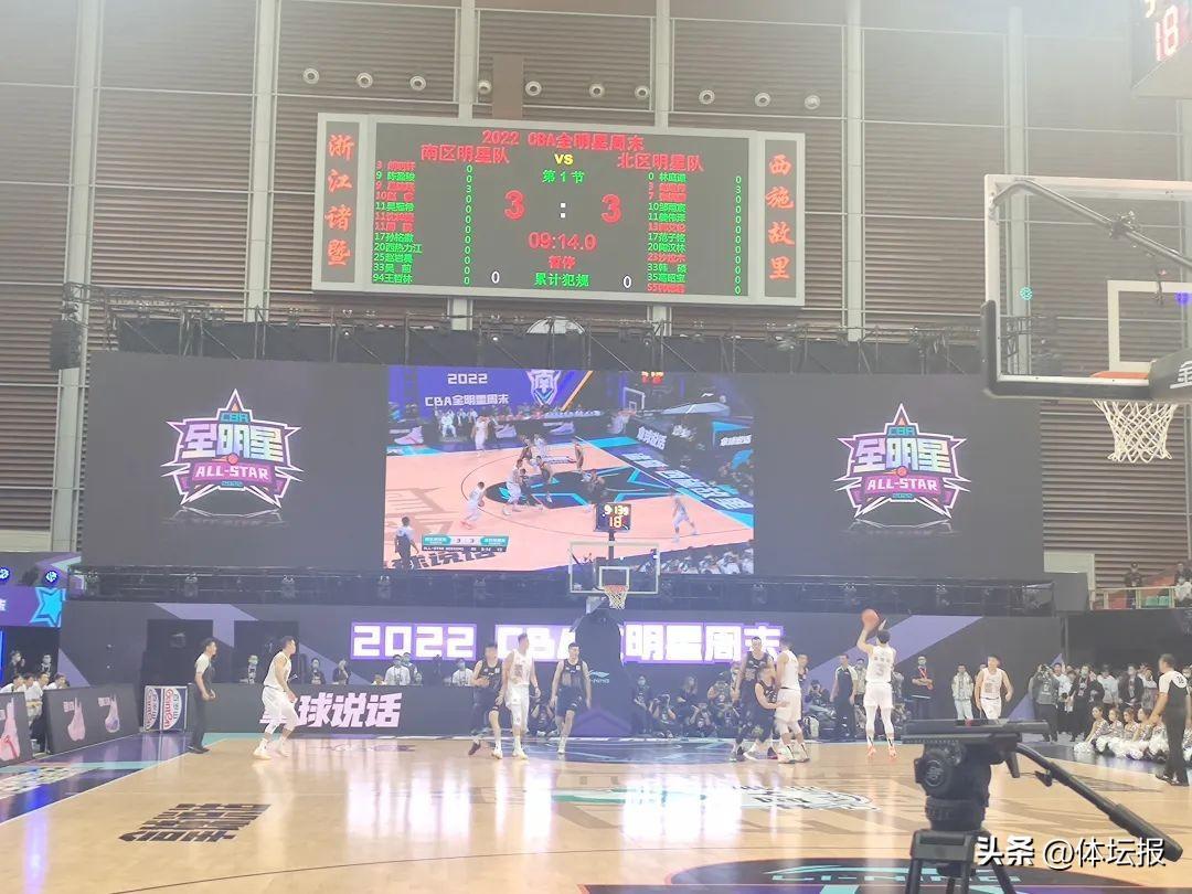 比賽開始後,易建聯和趙繼偉先後爲南北明星隊命中三分,周鵬也在搶斷後暴扣得手。不過,在暫停過後,傷愈復出不久的張鎮麟開始空中作業,屢次用暴扣點燃現場球迷的激情,趙睿則在外線還以精準投射。