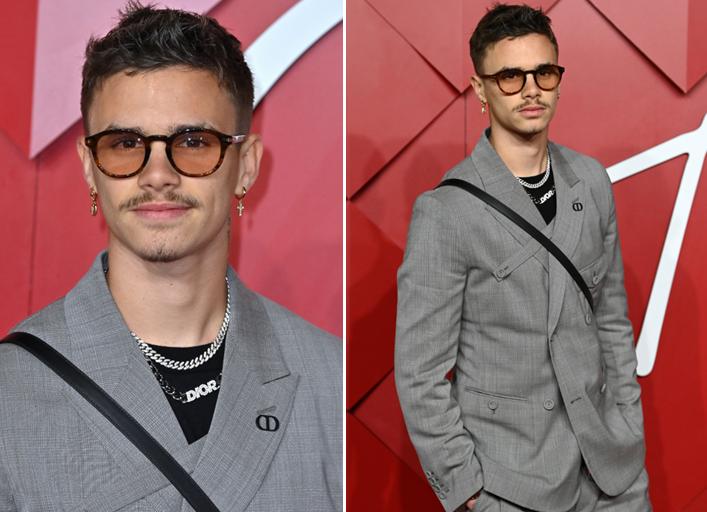 當地時間12月7日,貝克漢姆的二兒子羅密歐與女友米婭一起出席時尚紅毯秀,一身淺灰色西裝亮相,身材挺拔,不過,羅密歐的五官卻“略顯滄桑”,濃郁的八字鬍搭配茶色墨鏡,兩隻耳朵掛在重重的耳環,整個人看上去像是一個30+的哥哥,然而,羅密歐今年不過才20歲而已!