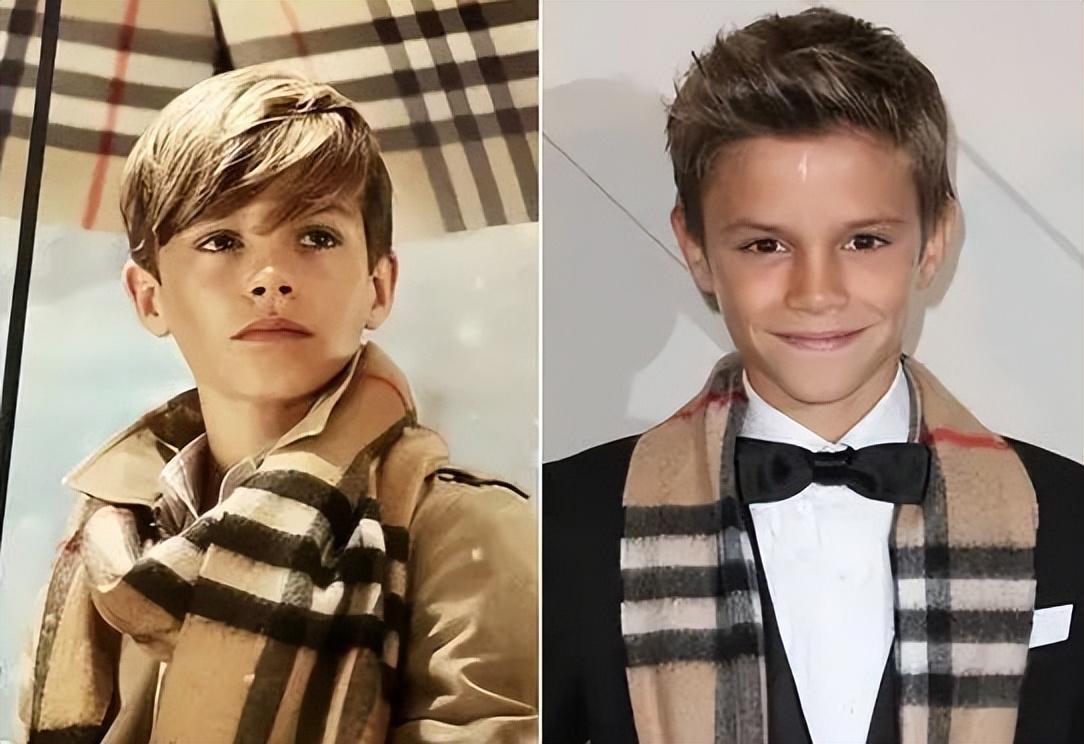 客觀來說,羅密歐的臉型和氣質很像貝克漢姆,比起大哥布魯克林,他儀態也要好很多,但是小時候的羅密歐,給人的感覺就兩個字——洋氣,一副富家公子的氣派,難怪很小年紀就可以接到奢侈品牌巴寶莉的廣告邀約。