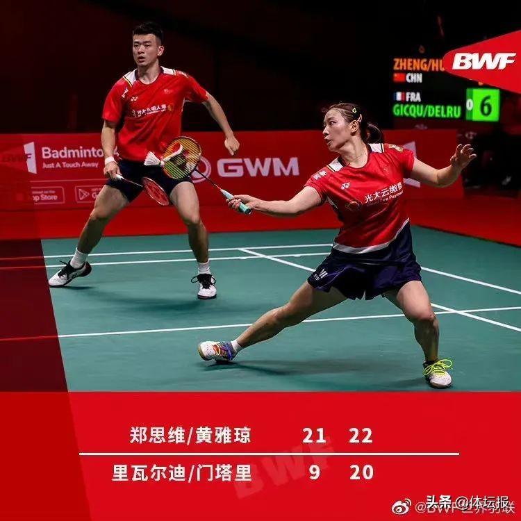 混雙賽場,奪冠熱門鄭思維/黃雅瓊的首個對手是法國組合吉奎爾/德爾呂。雙方實力存在明顯差距,雅思組合完全壓倒對手,以21-8和21-9,總比分2-0輕鬆斬獲小組賽開門紅。