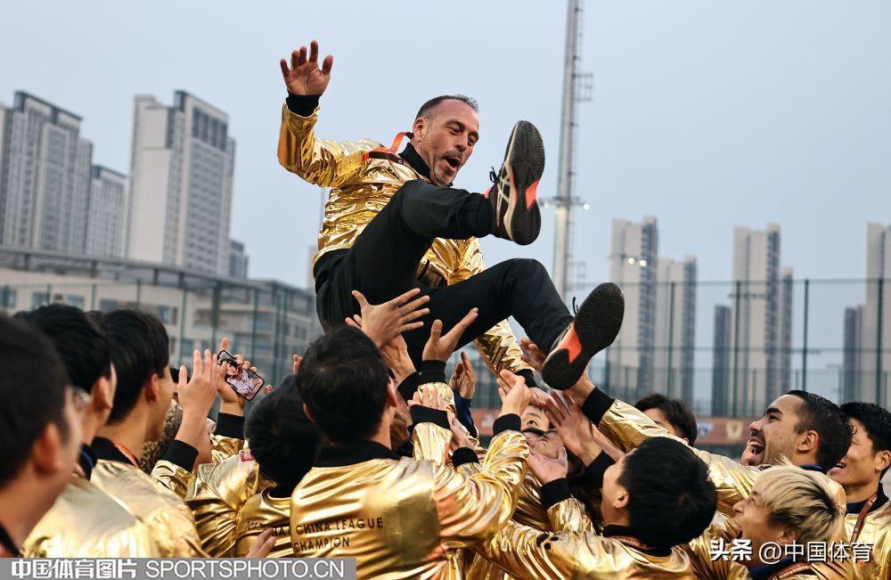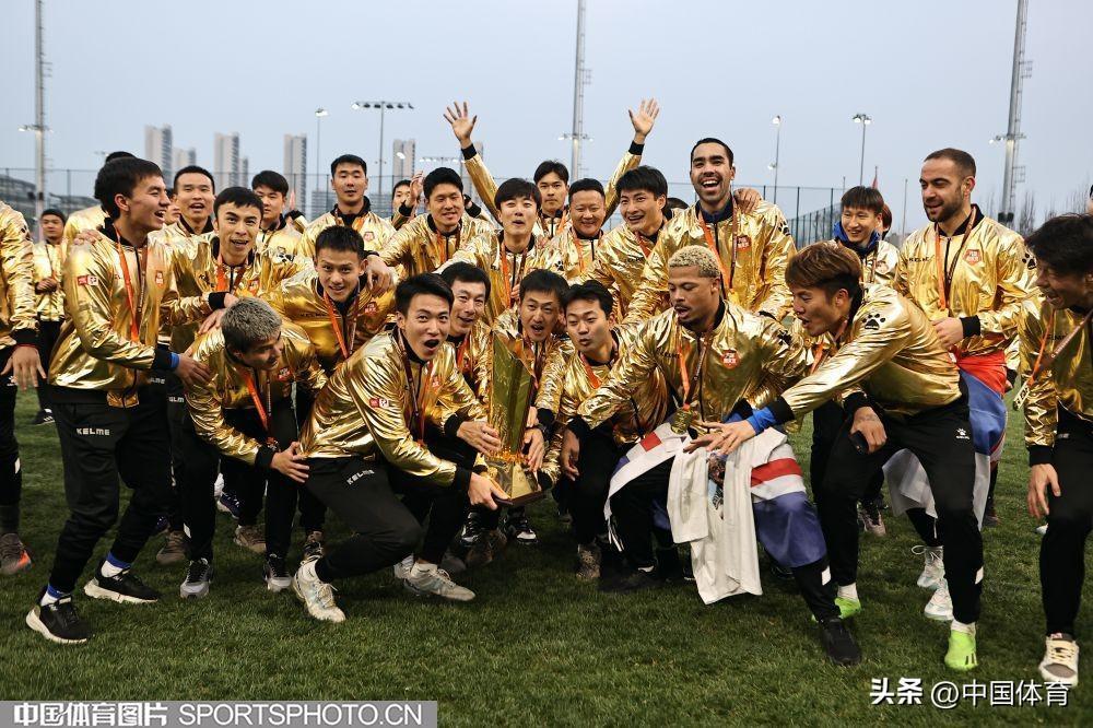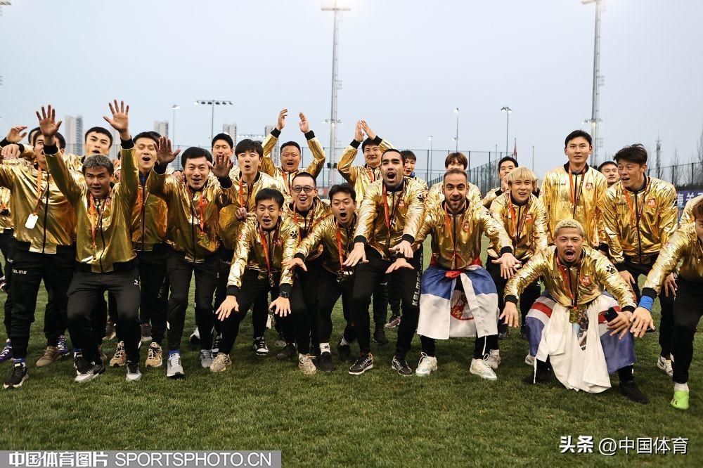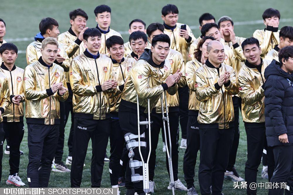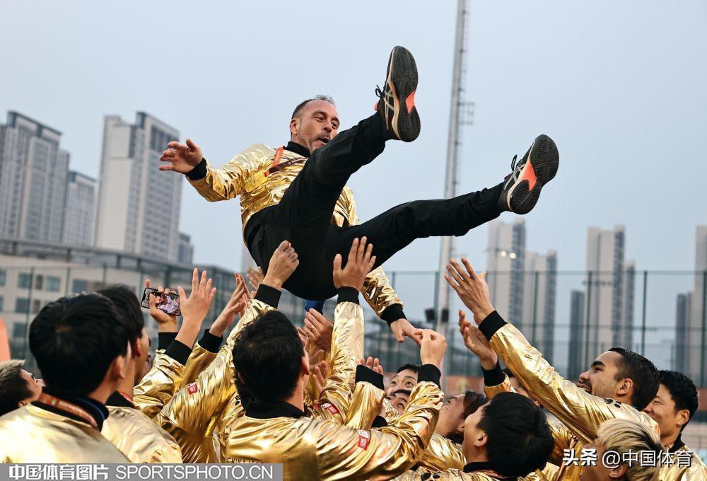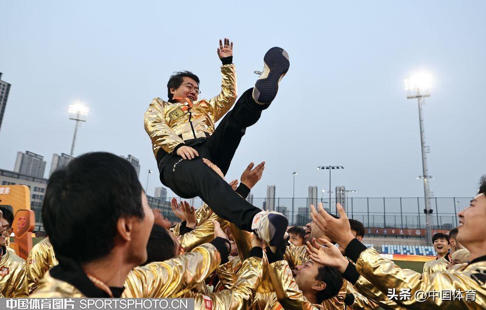 中國體育訊 12月8日,2022賽季中甲聯賽全部結束。崑山隊最終以28勝5平1負的戰績問鼎冠軍,攜手青島海牛和南通支雲一起升入2023賽季中超聯賽。圖爲崑山隊在頒獎儀式上。(中國體育圖片 王憲民 攝)