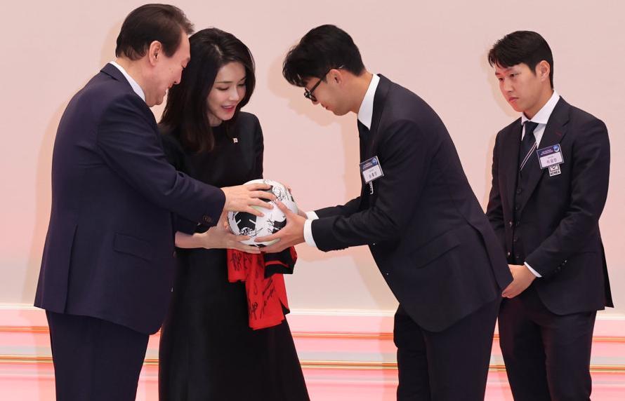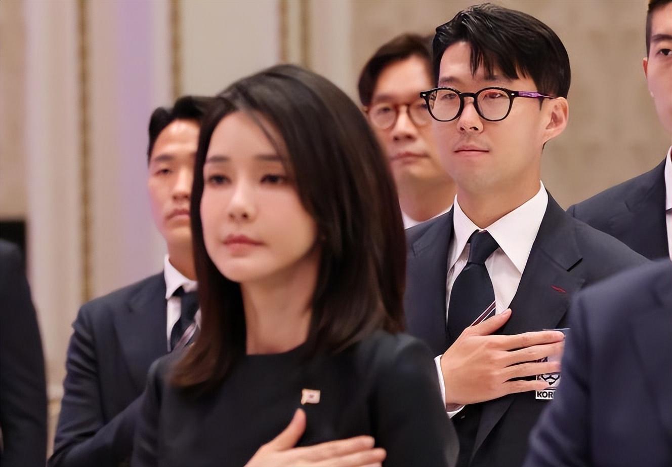 這次總統府的接待晚宴上,韓國第一夫人金建希依然是萬葉叢中一枝花,雖然她低調裝扮,一身黑衣,但皮膚白皙,五官精緻,與一衆帥哥球星在一起時,還是忍不住嘴角上揚。