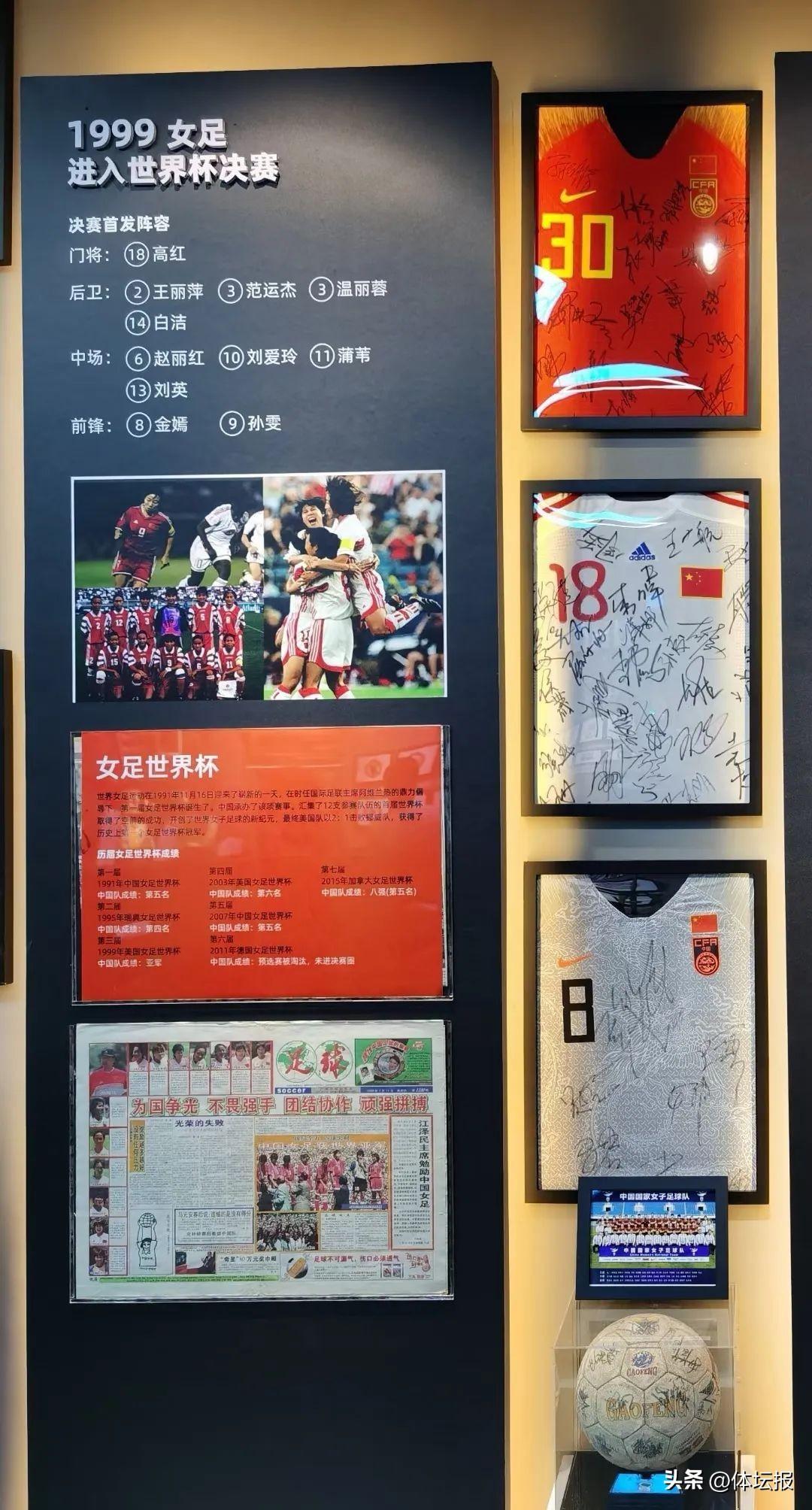 在館內,還能看到中國足球的歷史、中國足球名人堂介紹,中超16支球隊的簽名球衣與足球、女足世界盃的比賽錄音帶、足球卡片、老報紙、裁判員證等,還有球星的簽名球衣……這也是溫州市首家民營企業家創辦的足球博物館。