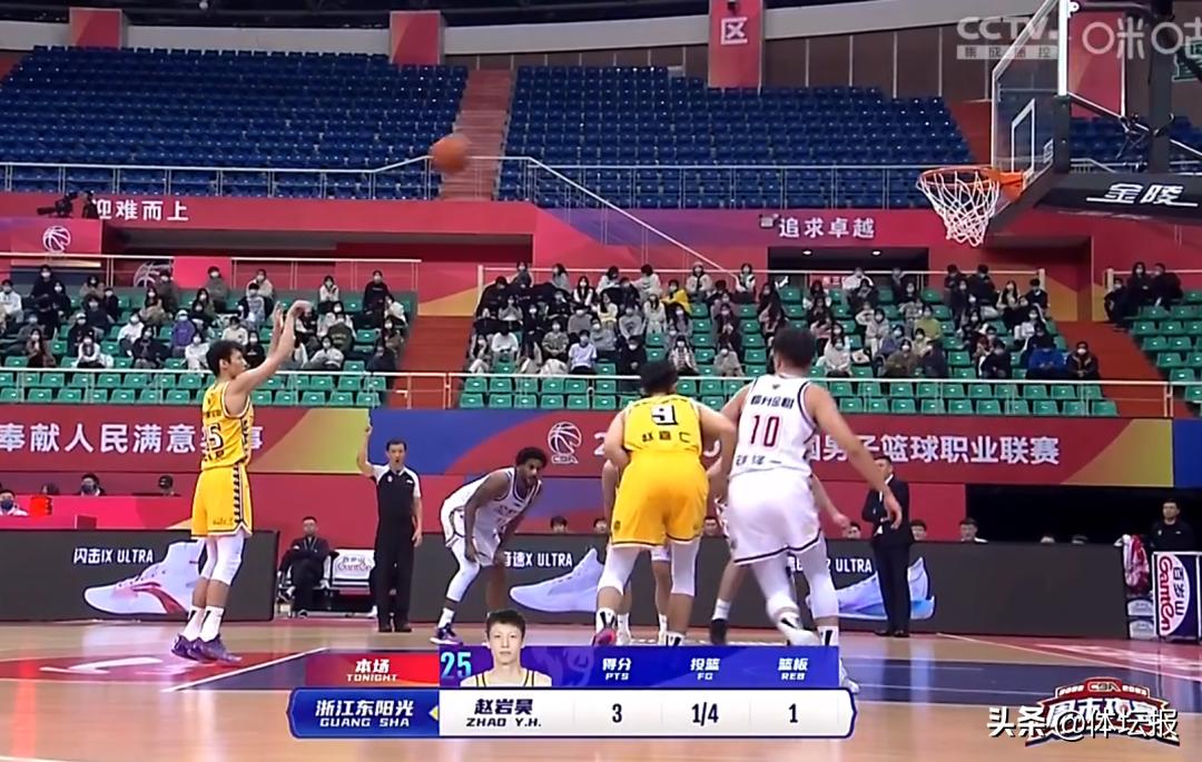 這邊浙江稠州金租男籃同樣不甘示弱,隊長吳前火力全開,半場結束三分球7投5中,拿到20分3個籃板。而東陽光這邊,除了孫銘徽一人砍下17分之外,其餘隊員均沒有上雙。因此,浙江稠州金租男籃正是依靠這一節的優勢,51:45反超東陽光,以6分的優勢進入了下半場。