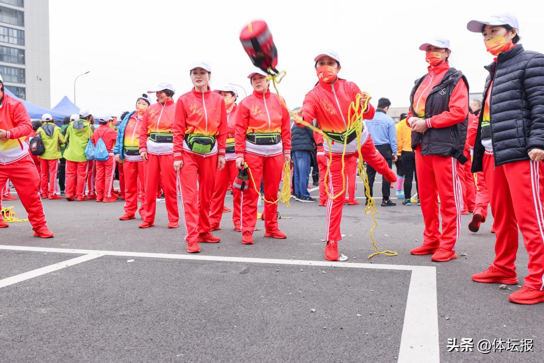 趣味賽上設置了拋擲纜繩、避礁入港、繩彩飛揚三個項目,其中前兩項別具海島特色,體現了漁民日常生活情節。當地的雲廊健步隊120人分四支小隊參與到不同項目中。今年61歲的顧三珠早早地進行拋擲纜繩的練習,“這個項目的原型是漁民靠岸時向碼頭扔纜繩,我沒有當過漁民,這是第一次體驗,也算是當了一次漁民。”顧阿姨是健步隊的一名新人,加入隊伍才兩個多月,如今已經愛上了徒步健身:“每天早晨或者晚飯後,我們一起排隊健步走,精氣神也好了。”