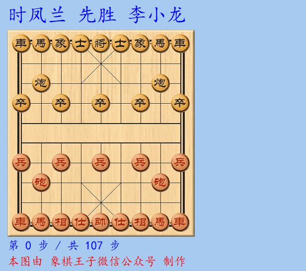 時鳳蘭中盤強攻,在車馬炮兵的三子虎視下,衝擊黑方防線,黑棋一馬入制,遭紅兵喫去,丟子下來,黑又連丟雙士,107手車炮單缺相對車雙象,女神告捷。