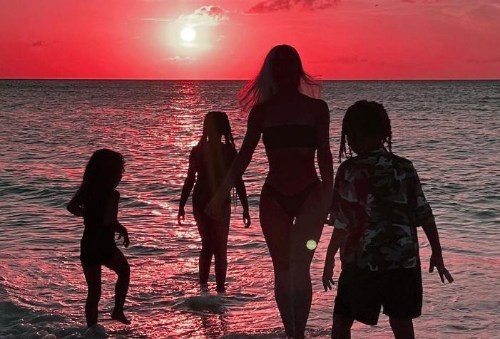 當地時間12月13日,金卡戴珊(Kim Kardashian)更新了個人INS狀態,分享了一張自己和三個孩子在海邊看落日的背影,配上一個“fullfilled(滿足)”單詞,透露着滿滿的母愛能量。穿着比基尼的金卡戴珊,就像是一個大地之母的能量體,孕育、滋養、和完滿,這一家人實在太有愛了,孩子們伴隨着母親身邊,畫面溫馨。