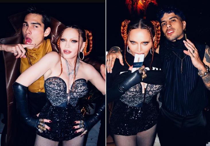 當然,麥當娜一直有顆年輕的心,時至今日,她還熱衷於夜店場所,經常和年輕的body“糾纏”,身邊總是鮮肉帥哥,完全看不出來她是老太太的感覺。麥當娜這些年也是各種誇張豪放的造型,甚至化過沒有眉毛的妝容,這也只有氣場如此強大的“麥奶”才能駕馭了。