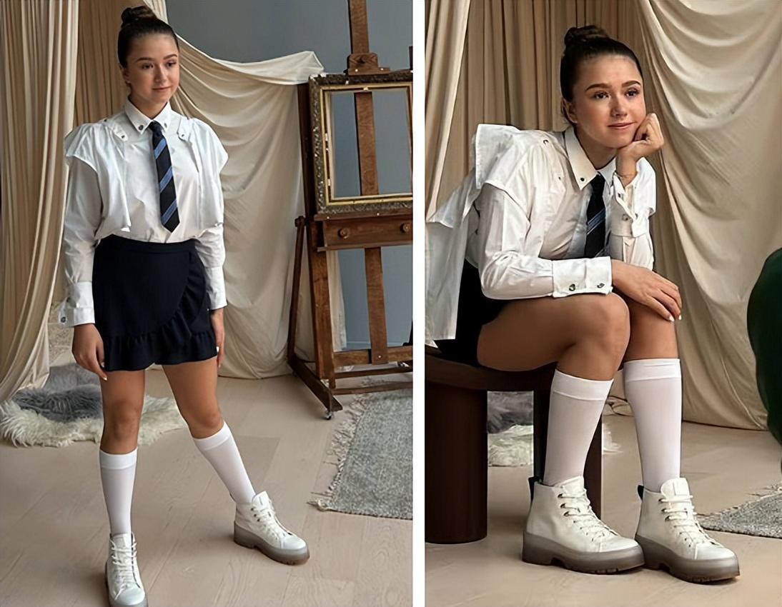 俄羅斯花滑天才少女瓦利耶娃更新了個人INS狀態,分享了一組最新時尚寫真的拍攝花絮,只見,16歲的K寶身穿清純學生裝,白襯衣搭配黑色短裙,可愛的小領帶,還有白色半膝襪,紮了一頭高高丸子頭,整體造型青春撲面,非常漂亮,很符合瓦利耶娃此時的年齡段和少女感!