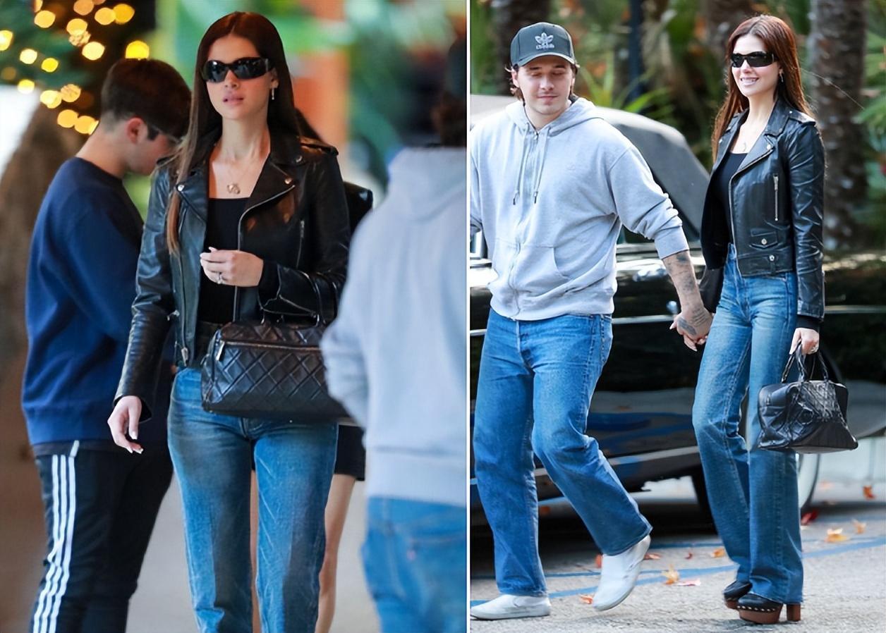 當地時間12月13日,貝克漢姆長子布魯克林與妻子妮可拉-佩爾茨(Nicola Peltz),甜蜜現身洛杉磯當地的一家BelAir Hotel,妮可拉穿着修長牛仔褲,搭配亙古不變的厚底高跟鞋,一條黑色皮衣裹身,酷勁十足,很有派頭。